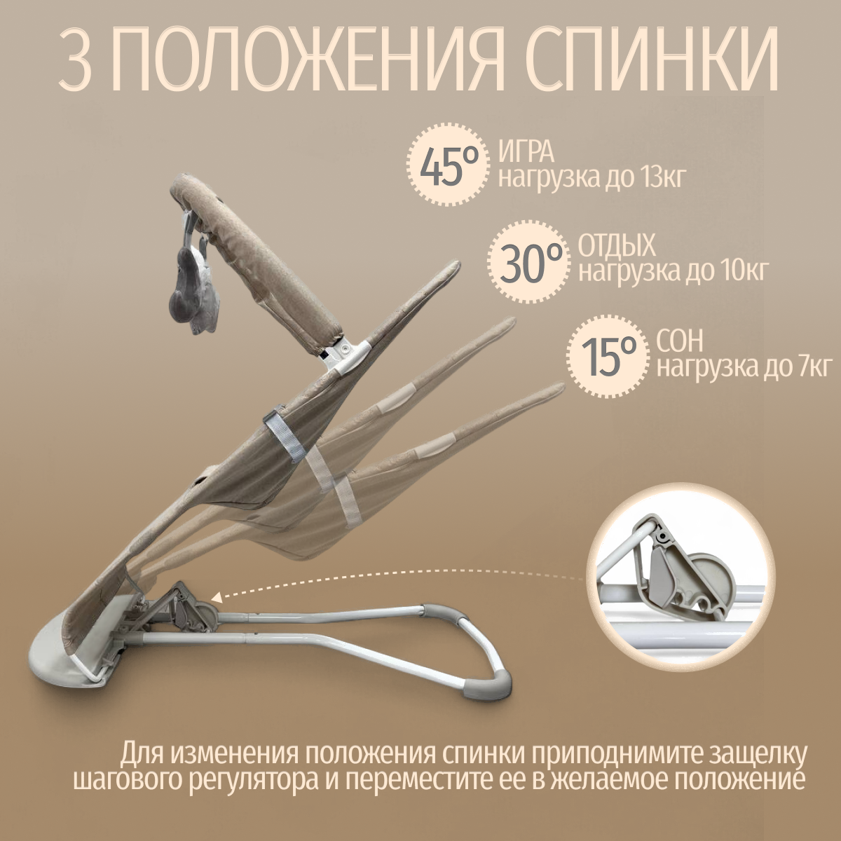• Регулировка наклона спинки есть (3 положения наклона спинки: 15°С , 30°С, 45°С)