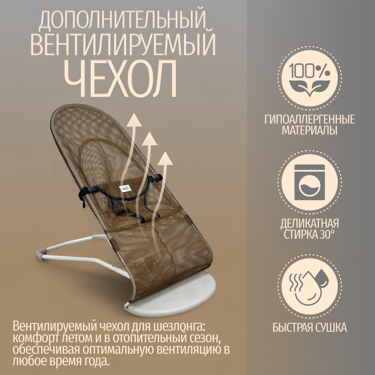 • Основной цвет коричневый (вентилируемый дополнительный чехол), бежевый