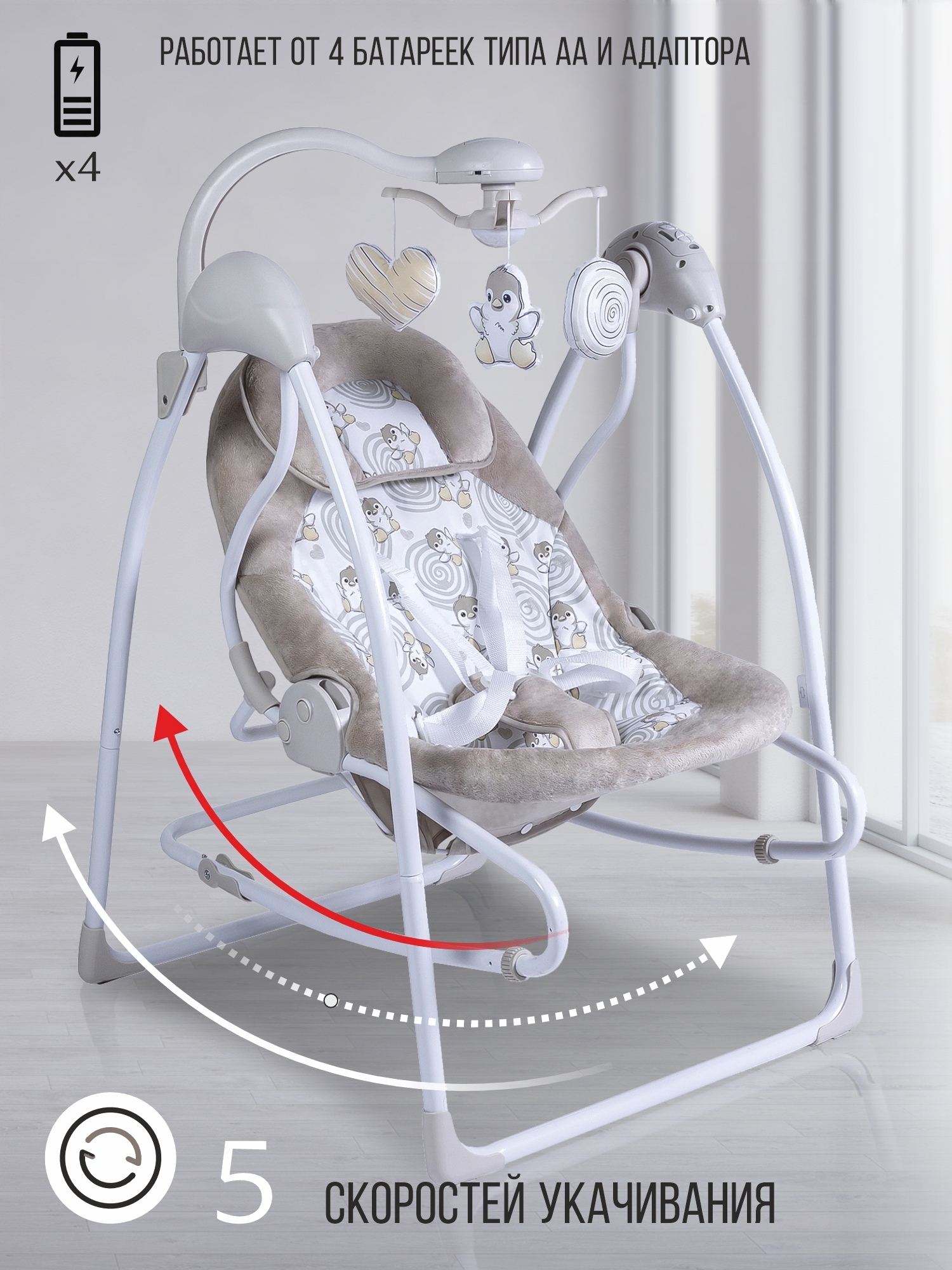 • Максимальный вес ребенка 9 кг (на качели), 15 кг (на шезлонг)