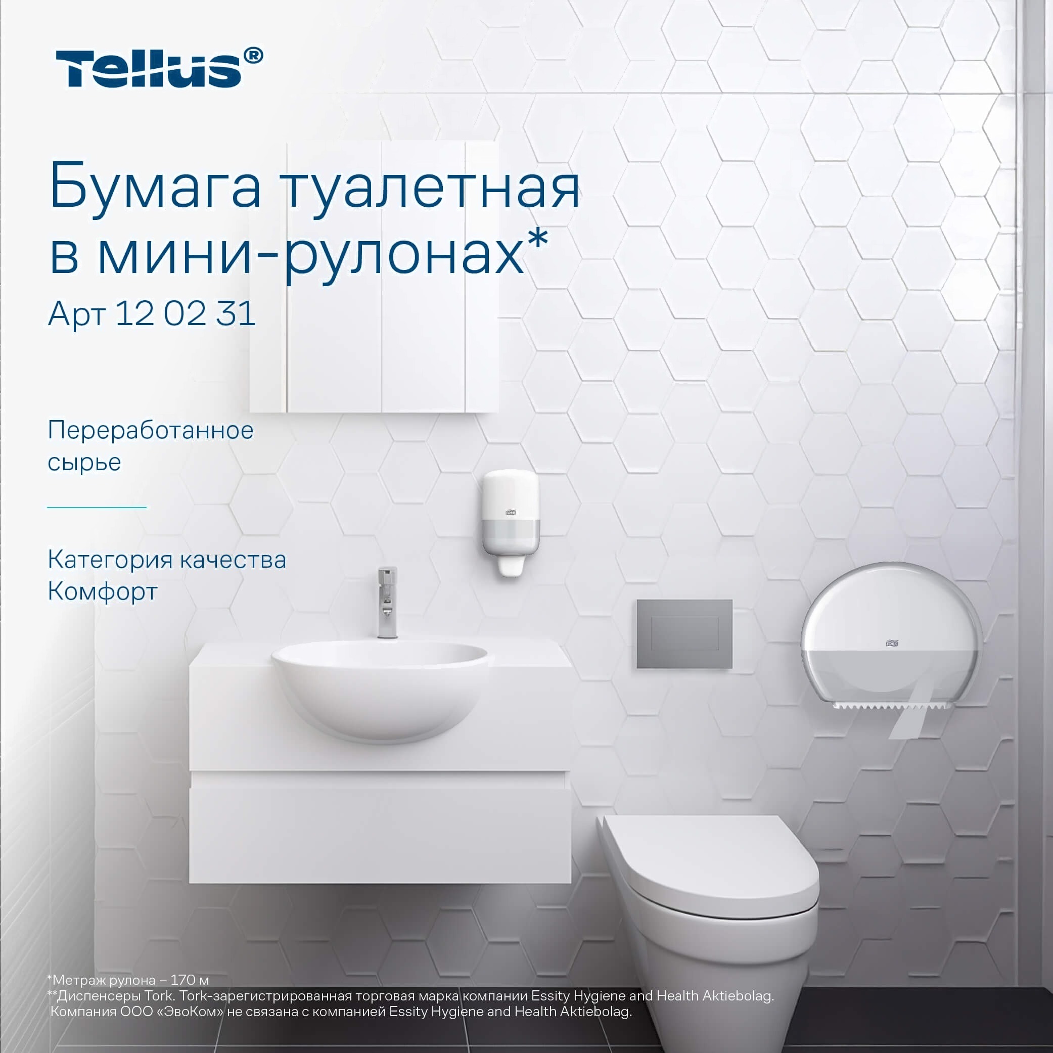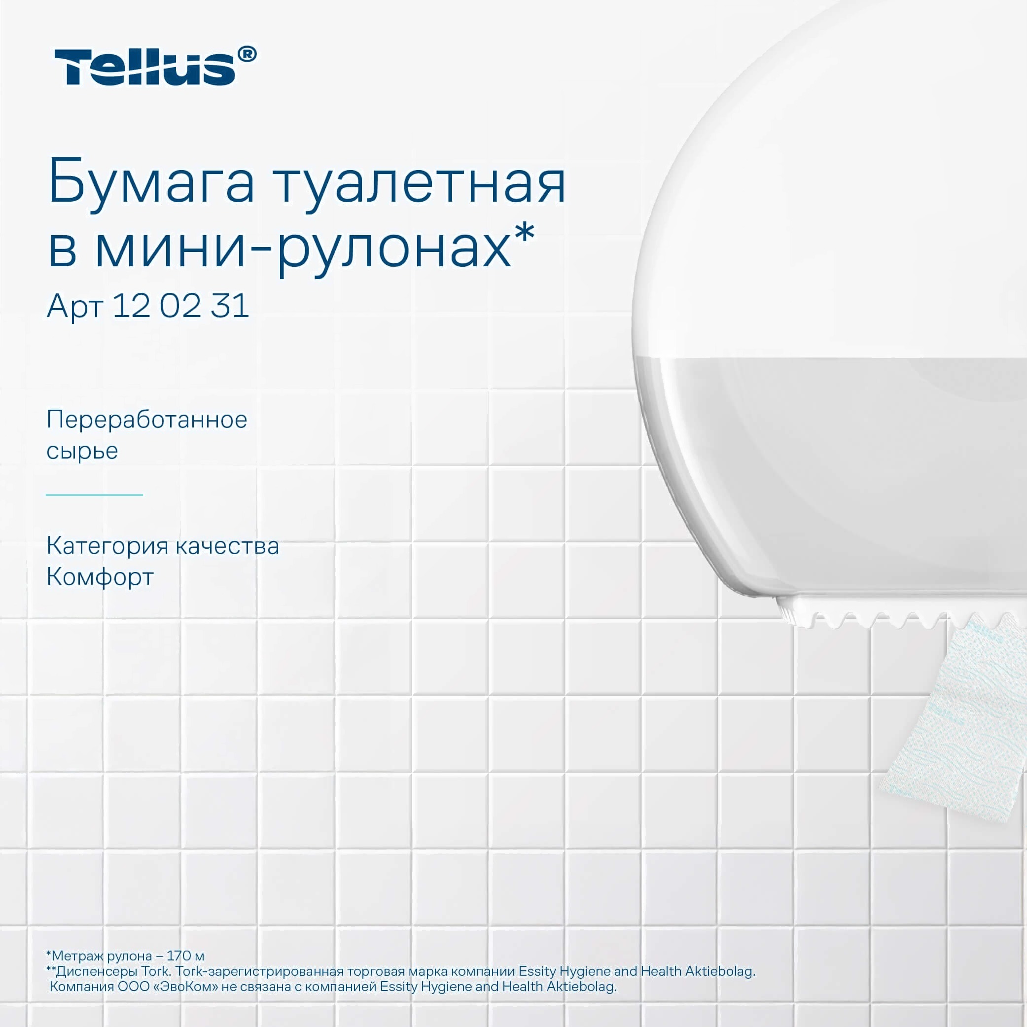 Туалетная бумага Tellus В мини-рулонах 2 слоя 120231/Т2 (170м)