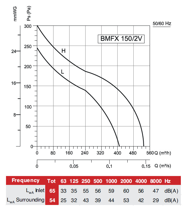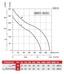 - Производительность 530 м³/ч (410 м³/ч - 1-я скорость, 530 м³/ч - 2-я скорость)