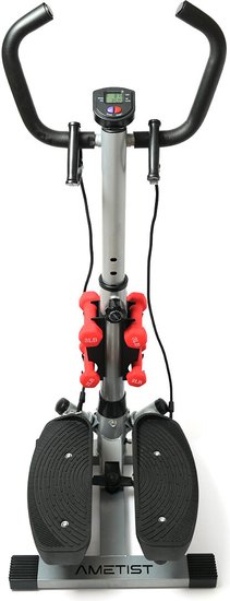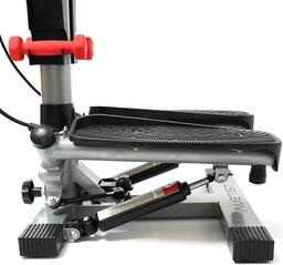 ✅Ключевые характеристикиПоворотный степпер для домашних тренировок с максимальной нагрузкой до 120 кг, механической системой нагружения и счетчиком шагов. Подходит для пользователей, которым важна проработка мышц ног, ягодиц, спины и пресса.✅Преимущества и отличияВ конструкции предусмотрены эспандеры для тренировки верхней части тела, а широкие нескользящие педали (32*11 см) обеспечивают дополнительную безопасность и комфорт. Прочная основа и наличие поручней делают тренировки стабильными и удобными.✅ПрактичностьДисплей отображает основные показатели:время тренировки, количество шагов, расход калорий и ритм, что позволяет легко отслеживать прогресс. Нескользящие накладки на ножках защищают пол от повреждений.✅УникальностьОсобенностью модели является поворотная конструкция, которая задействует большее количество мышц за счет вращательных движений корпуса, а также наличие прочных резиновых эспандеров для комплексной проработки тела.✅Ключевые характеристикиПоворотный степпер для домашних тренировок с максимальной нагрузкой до 120 кг, механической системой нагружения и счетчиком шагов. Подходит для пользователей, которым важна проработка мышц ног, ягодиц, спины и пресса.✅Преимущества и отличияВ конструкции предусмотрены эспандеры для тренировки верхней части тела, а широкие нескользящие педали (32*11 см) обеспечивают дополнительную безопасность и комфорт. Прочная основа и наличие поручней делают тренировки стабильными и удобными.✅ПрактичностьДисплей отображает основные показатели:время тренировки, количество шагов, расход калорий и ритм, что позволяет легко отслеживать прогресс. Нескользящие накладки на ножках защищают пол от повреждений.✅УникальностьОсобенностью модели является поворотная конструкция, которая задействует большее количество мышц за счет вращательных движений корпуса, а также наличие прочных резиновых эспандеров для комплексной проработки тела.