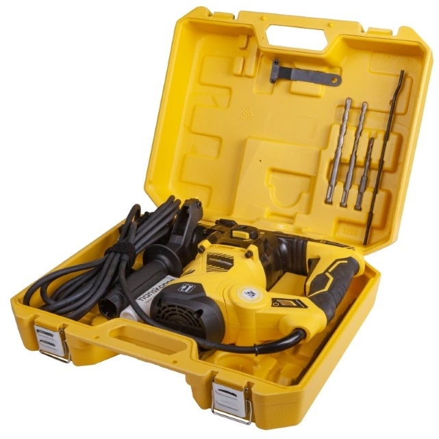 Комплект поставкиПерфоратор, смазка для хвостовиков буров, ограничитель глубины сверления, дополнительная рукоятка, инструкция по эксплуатации, кейс.