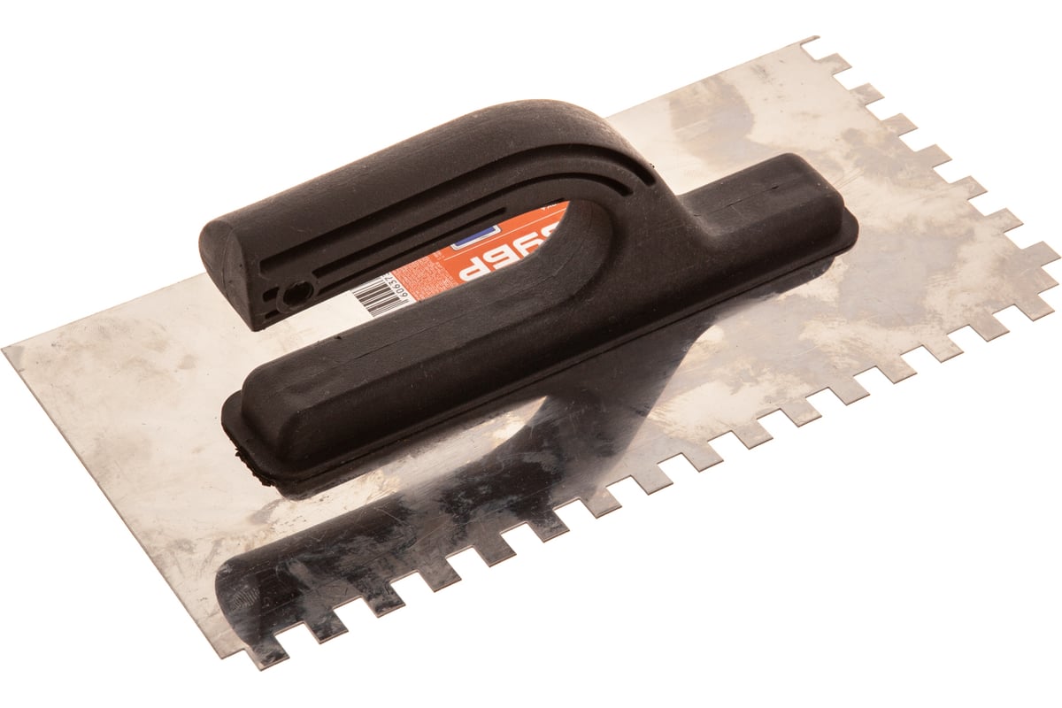 Гладилка Зубр Мастер 130x270мм, 8x8 мм, штукатурная зубчатая нержавеющая с пластиковой ручкой 08042-08 оснащена зеркальным отполированным нержавеющим полотном, что обеспечивает надежность конструкции и высокую коррозиестойкость. Удобная пластиковая рукоять гарантирует комфортную работу при нанесении и распределении штукатурных смесей и клеевых составов.