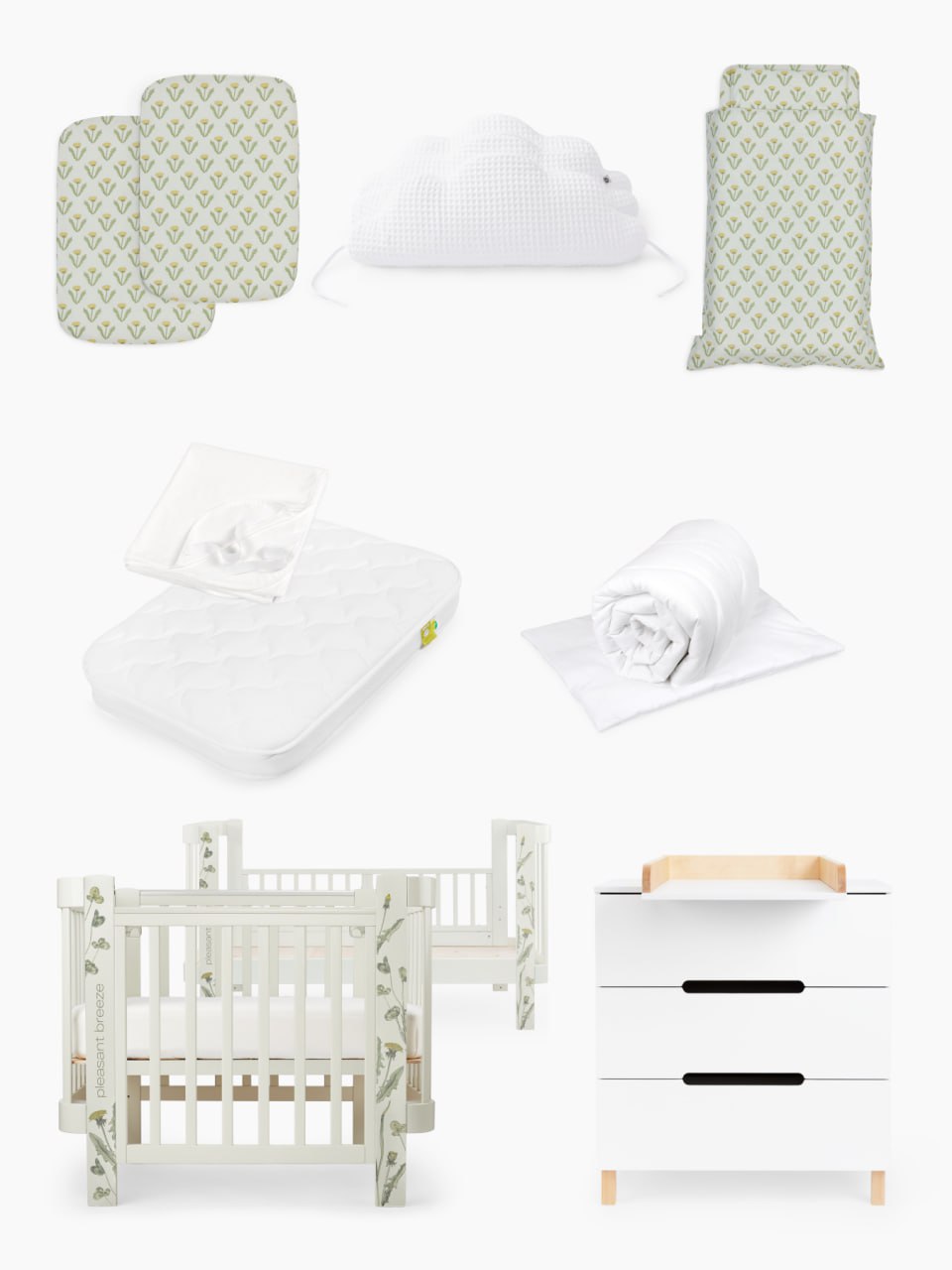 В состав набора из 11 предметов входит: • Комод FIOKI V2 • Кроватка-трансформер MOMMY LOVE • Матрас для люльки-кроватки MOMMY LOVE 100х70 см • Наматрасник детский 100х70 см • Набор бортиков на кроватку, 3 шт • Подушка детская • Одеяло детское • Набор разделителей для ящиков, 2 шт. SORTLINE «СОРТЛАЙН» • Комплект постельного белья (пододеяльник и наволочка) • Простыня на резинке 100х70 см, 2 шт Комод с пеленальным столом FIOKI V2 Артикул : 91037 Кол-во в наборе : 1 шт Цвет : белый Состав : МДФ, натуральная древесина Комод Fioki V2 станет важной частью вашей детской комнаты. Несмотря на компактные размеры, он обеспечивает вместительное хранение всех необходимых вещей для малыша: средств по уходу, пелёнок, одежды и постельного белья. Ящики легко и бесшумно открываются, не нарушая сон ребёнка, а ножки из натурального дерева придают комоду дополнительную устойчивость. Съемный пеленальный столик делает уход за малышом еще проще и удобнее, а его бортики обеспечивают дополнительную безопасность. Особенности • Компактные размеры, идеально подходящие для небольших помещений • Изготовлен из натурального дерева • Ящики с шариковыми направляющими и доводчиком, обеспечивающие плавное открывание • В комплекте пеленальный столик • Эргономичный дизайн, вписывающийся в любой интерьер детской комнаты • Устойчивая конструкция для дополнительной безопасности Кроватка-трансформер MOMMY LOVE Артикул : 95026 Кол-во в наборе : 1 шт Цвет : белый, зеленый, молочный, розовый (в зависимости от выбранного цвета набора) Возраст : от 0 до 10 лет Детская кровать-трансформер MOMMY LOVE™ - это практичное и функциональное решение для растущих семей. Сочетая в себе уют и удобство, она идеально подходит для вашего малыша с самого рождения. Кровать поставляется с мягким мятником для люльки и комплектом расширения, который позволяет адаптировать кровать к потребностям растущего ребенка. Процесс разборки и установки комплекта расширения максимально прост и интуитивен. Детали легко вставляются, превращая люльку в полноразмерную детскую кровать. Это удобство делает MOMMY LOVE™ отличным выбором для семей, ценящих практичность и легкость использования. Созданная с использованием высококачественных материалов, кровать обеспечивает долговечность и стиль. Современный дизайн и простота в уходе делают MOMMY LOVE™ идеальным местом для отдыха вашего малыша и удобным выбором для вас. Особенности Кроватка-трансформер MOMMY LOVE - 3 в 1: Люлька: 100x70 см; Кровать: 160x70 см; • Выполнена из натуральной древесины твёрдых пород (бук). • Реечные стенки и дно с отверстиями обеспечивают вентиляцию. • Съёмная стенка и ремни для прикроватного использования. • Три уровня высоты спального места • Возможность наклона спального места на угол в 6° • Бортики стенок со специальными накладками для защиты малыша в период прорезывания зубов. • Классический минималистичный дизайн. • Идеально дополняется постельными принадлежностями HappyBaby. Матрас для люльки-кроватки MOMMY LOVE 100х70 см Артикул : 95021 Кол-во в наборе : 1 шт Цвет : белый Состав : наполнитель - кокосовая койра, нетканый материал Hollcon Eucalypt (70% полиэстер, 30% эвкалиптовые волокна), латекс, нетканый материал Airotek; съемный чехол - трикотаж StressFree (верхний слой 100% хлопок, нижний слой 100% полиэстер) Матрас Happy Baby идеально подходит для малышей с самого рождения и соответствует всем требованиям для здорового сна 