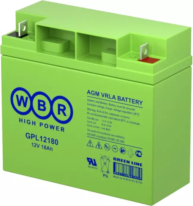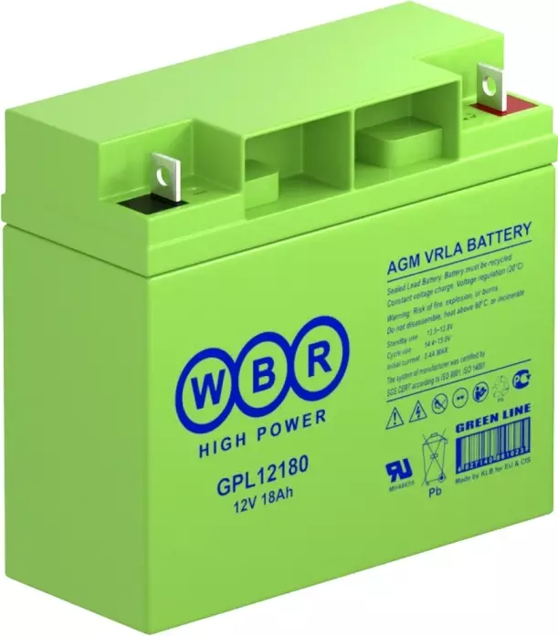 Батарея для ИБП WBR GPL12180, 12В, 18Ач (gpl12180 wbr)