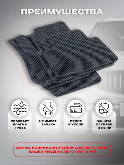 Автоковрики BYD - это современное решение для защиты салона автомобиля от грязи, влаги и пыли. Изготавливаются из инновационного полимерного материала EVA (этиленвинилацетат), который отличается легкостью, прочностью и долговечностью. Благодаря ячеистой структуре коврики надежно удерживают воду, песок, снег и мусор, предотвращая их распространение по салону.Такие коврики идеально повторяют форму пола автомобиля, не скользят и фиксируются в салоне с помощью специальных креплений. ЭВА-коврики легко моются водой, быстро сохнут и не впитывают запахи. Они не дубеют на морозе и не теряют эластичность при высоких температурах.Эти аксессуары подойдут для круглогодичного использования – летом защитят салон от пыли и песка, а зимой от снега и реагентов. Широкая цветовая гамма и возможность выбора окантовки позволяют подобрать автоковрики под стиль салона и сделать интерьер автомобиля более индивидуальным.Автоковрики BYD - это современное решение для защиты салона автомобиля от грязи, влаги и пыли. Изготавливаются из инновационного полимерного материала EVA (этиленвинилацетат), который отличается легкостью, прочностью и долговечностью. Благодаря ячеистой структуре коврики надежно удерживают воду, песок, снег и мусор, предотвращая их распространение по салону.Такие коврики идеально повторяют форму пола автомобиля, не скользят и фиксируются в салоне с помощью специальных креплений. ЭВА-коврики легко моются водой, быстро сохнут и не впитывают запахи. Они не дубеют на морозе и не теряют эластичность при высоких температурах.Эти аксессуары подойдут для круглогодичного использования – летом защитят салон от пыли и песка, а зимой от снега и реагентов. Широкая цветовая гамма и возможность выбора окантовки позволяют подобрать автоковрики под стиль салона и сделать интерьер автомобиля более индивидуальным.