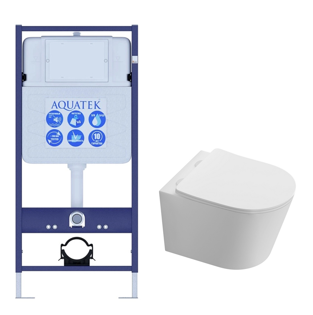 SET AQUATEK ТАУРУС Т (рама AQUATEK Standard INS-0000012(без клавиши и крепежа)+Унитаз подвесной AQ1580T-00 ТАУРУС с тонким сиденьем soft-close