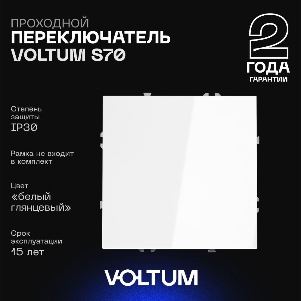 Проходной переключатель встраиваемый Voltum S70 одноклавишный 10А, (белый глянцевый) VLS010301