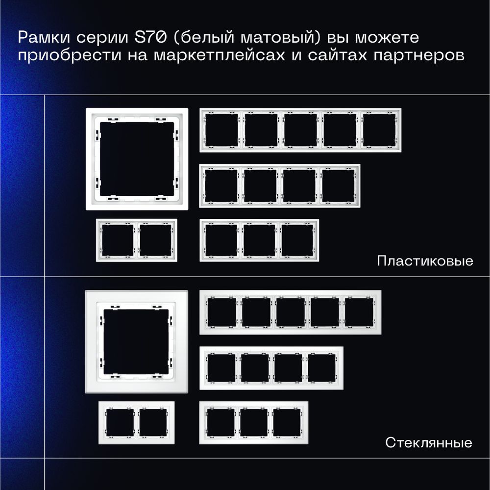 Проходной переключатель встраиваемый Voltum S70 одноклавишный с подсветкой 10А, (белый матовый) VLS010402
