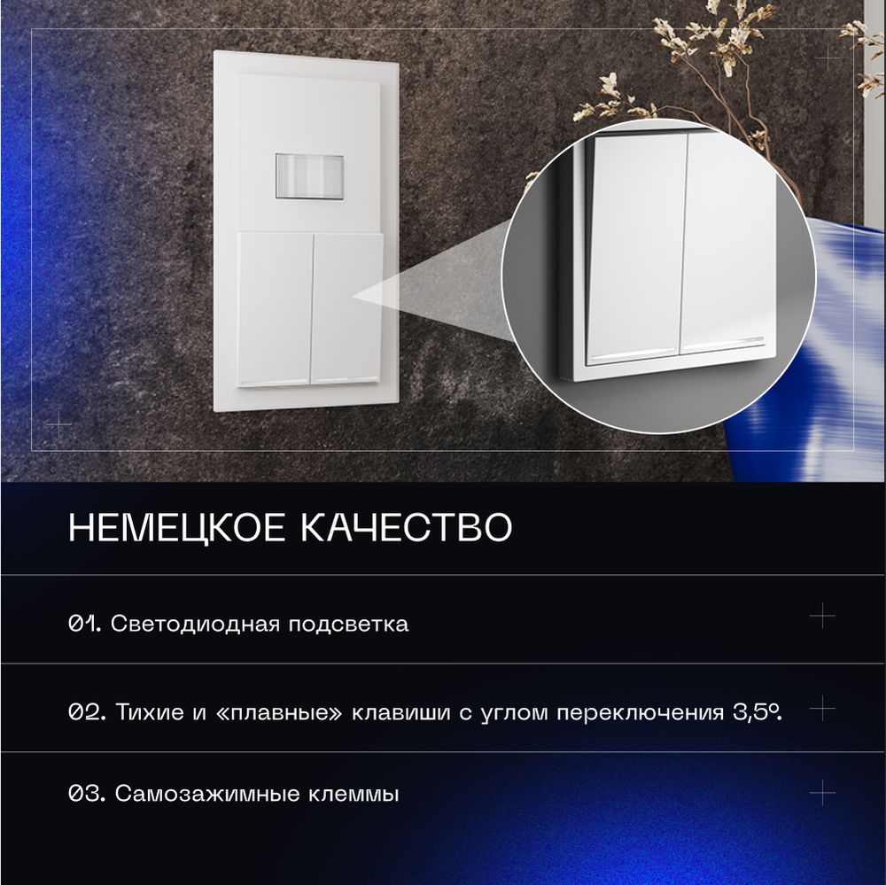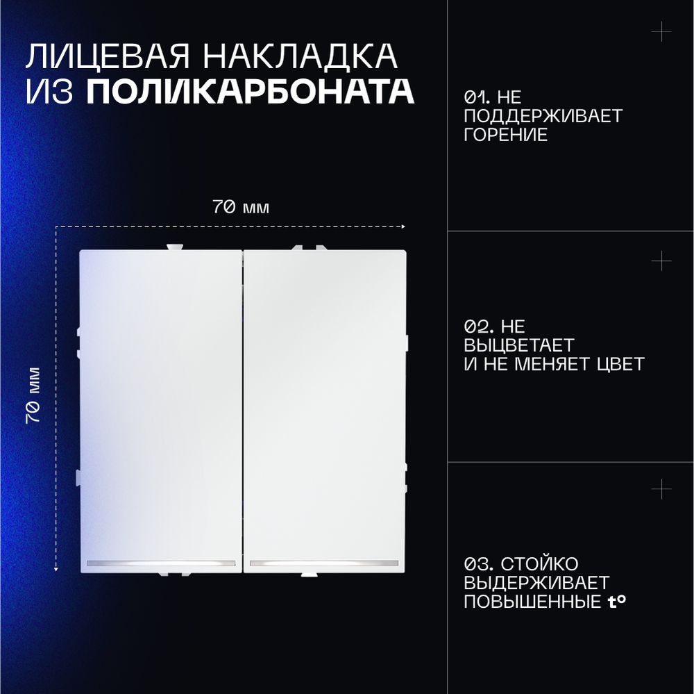 Выключатель встраиваемый Voltum S70 двухклавишный с подсветкой 10А, (белый матовый) VLS020202