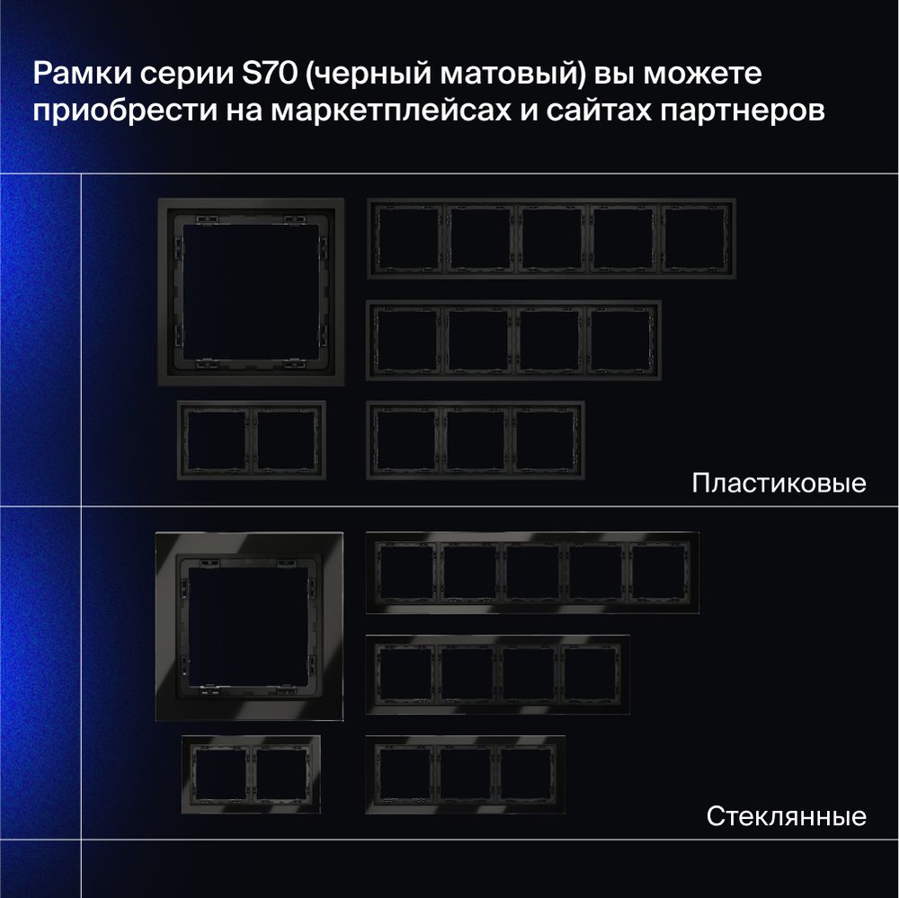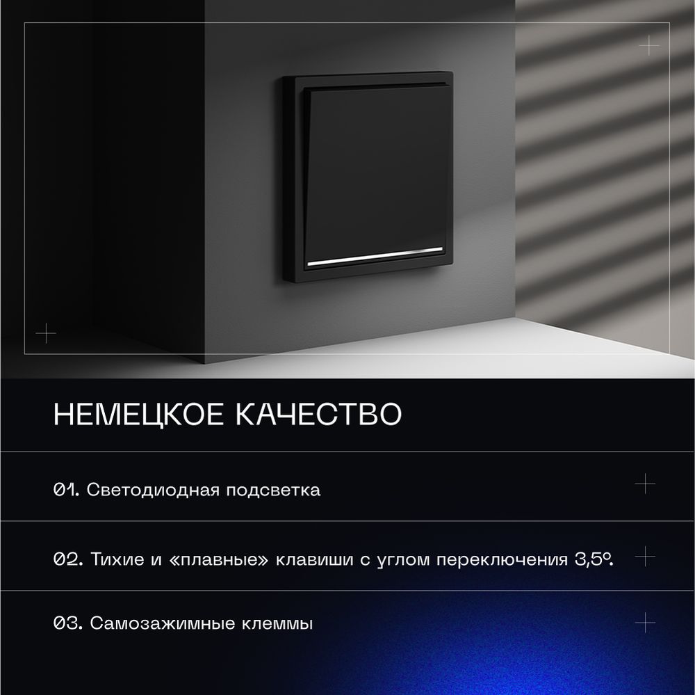Проходной переключатель встраиваемый Voltum S70 одноклавишный с подсветкой 10А, (черный матовый) VLS010408