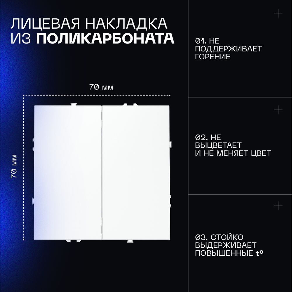 Выключатель с самовозвратом встраиваемый Voltum S70 двухклавишный 10А, (белый матовый) VLS020602