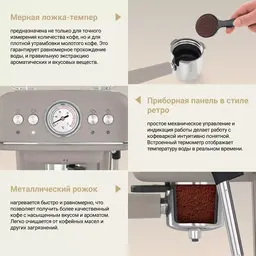 ОсобенностиКофейная ложка-темпер, входящая в комплект, является не только мерной ложкой, но и прессом для утрамбовки молотого кофе. Это гарантирует равномерное прохождение воды и правильную экстракцию ароматических и вкусовых веществ, что делает ваш кофе по-настоящему насыщенным.