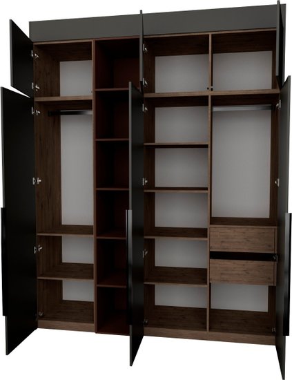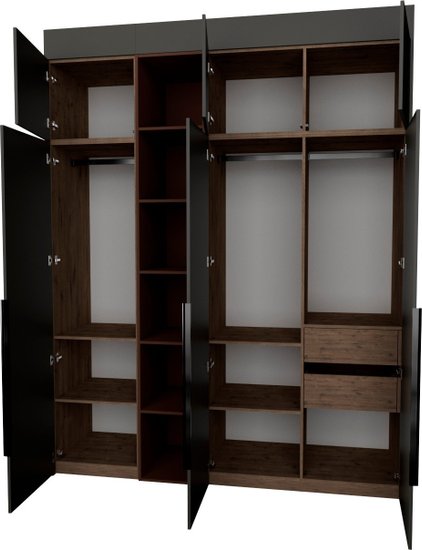 ✅Ключевые характеристикиШкаф распашной с модульной конструкцией предназначен для хранения одежды и предметов общего назначения в различных помещениях: детской; жилой комнате; столовой; прихожей; спальне; офисе и гардеробной. Общие размеры составляют 205.2 см в ширину; что гарантирует безопасность и экологичность.✅Преимущества и отличияМодель оснащена фурнитурой Blum и Hafele с доводчиками и механизмом TipOn для удобного открывания дверей без усилий. Регулируемые металлические опоры компенсируют неровности пола; а крепления защищают от опрокидывания; обеспечивая надежность и безопасность эксплуатации. Фасады выполнены до пола без видимого цоколя; что придает изделию современный и аккуратный внешний вид.✅ПрактичностьВнутреннее наполнение включает 2 ящика; а также 5 открытых полок и антресоль; что позволяет рационально организовать пространство для хранения. Направляющие скрытого монтажа с доводчиками обеспечивают плавное и бесшумное движение ящиков. Шкаф легко собирается даже в узких помещениях и подходит для установки в нишу; угол или вдоль стены.✅УникальностьВысота шкафа регулируется с помощью доборных элементов в диапазоне от 2450 до 2740 мм; что позволяет адаптировать мебель под индивидуальные параметры помещения. Использование современных механизмов TipOn и доводчиков в сочетании с качественными материалами и продуманной конструкцией выделяет эту модель среди типичных решений и обеспечивает комфорт и долговечность в эксплуатации.✅Ключевые характеристикиШкаф распашной с модульной конструкцией предназначен для хранения одежды и предметов общего назначения в различных помещениях: детской; жилой комнате; столовой; прихожей; спальне; офисе и гардеробной. Общие размеры составляют 205.2 см в ширину; что гарантирует безопасность и экологичность.✅Преимущества и отличияМодель оснащена фурнитурой Blum и Hafele с доводчиками и механизмом TipOn для удобного открывания дверей без усилий. Регулируемые металлические опоры компенсируют неровности пола; а крепления защищают от опрокидывания; обеспечивая надежность и безопасность эксплуатации. Фасады выполнены до пола без видимого цоколя; что придает изделию современный и аккуратный внешний вид.✅ПрактичностьВнутреннее наполнение включает 2 ящика; а также 5 открытых полок и антресоль; что позволяет рационально организовать пространство для хранения. Направляющие скрытого монтажа с доводчиками обеспечивают плавное и бесшумное движение ящиков. Шкаф легко собирается даже в узких помещениях и подходит для установки в нишу; угол или вдоль стены.✅УникальностьВысота шкафа регулируется с помощью доборных элементов в диапазоне от 2450 до 2740 мм; что позволяет адаптировать мебель под индивидуальные параметры помещения. Использование современных механизмов TipOn и доводчиков в сочетании с качественными материалами и продуманной конструкцией выделяет эту модель среди типичных решений и обеспечивает комфорт и долговечность в эксплуатации.