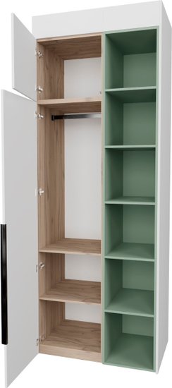 ✅Ключевые характеристикиШкаф распашной предназначен для хранения одежды; книг и предметов общего назначения в различных помещениях: детской; жилой комнате; столовой; прихожей; спальне; офисе и гардеробной. Его модульная конструкция из ЛДСП класса Е0.5 обеспечивает экологическую безопасность и долговечность. Размеры изделия составляют 97.2 см в ширину; что позволяет эффективно использовать пространство.✅Преимущества и отличияМодель оснащена высококачественной фурнитурой Blum и Hafele с доводчиками и TipOn-механизмами для удобного и бесшумного открывания дверей. Регулируемые металлические опоры компенсируют неровности пола; а крепления защищают шкаф от опрокидывания; что повышает безопасность эксплуатации. Фасады выполнены до пола без видимого цоколя; что придаёт изделию современный и аккуратный внешний вид.✅ПрактичностьШкаф легко собирается даже в узких помещениях и подходит для установки в нишу; угол или вдоль стены. Внутреннее наполнение включает две полки и одну штангу для одежды; а также пять открытых полок для удобного размещения различных предметов. Направляющие скрытого монтажа с доводчиками обеспечивают плавное закрывание дверей; а открытие при нажатии упрощает использование.✅УникальностьВысота изделия регулируется с помощью доборных элементов в диапазоне от 2450 до 2740 мм; что позволяет адаптировать шкаф под индивидуальные параметры помещения. Использование ЛДСП с сертифицированным качеством ЕАЭС и сочетание цветов фасада и каркаса создают стильный и функциональный предмет мебели; который выделяется продуманной конструкцией и надежностью.✅Ключевые характеристикиШкаф распашной предназначен для хранения одежды; книг и предметов общего назначения в различных помещениях: детской; жилой комнате; столовой; прихожей; спальне; офисе и гардеробной. Его модульная конструкция из ЛДСП класса Е0.5 обеспечивает экологическую безопасность и долговечность. Размеры изделия составляют 97.2 см в ширину; что позволяет эффективно использовать пространство.✅Преимущества и отличияМодель оснащена высококачественной фурнитурой Blum и Hafele с доводчиками и TipOn-механизмами для удобного и бесшумного открывания дверей. Регулируемые металлические опоры компенсируют неровности пола; а крепления защищают шкаф от опрокидывания; что повышает безопасность эксплуатации. Фасады выполнены до пола без видимого цоколя; что придаёт изделию современный и аккуратный внешний вид.✅ПрактичностьШкаф легко собирается даже в узких помещениях и подходит для установки в нишу; угол или вдоль стены. Внутреннее наполнение включает две полки и одну штангу для одежды; а также пять открытых полок для удобного размещения различных предметов. Направляющие скрытого монтажа с доводчиками обеспечивают плавное закрывание дверей; а открытие при нажатии упрощает использование.✅УникальностьВысота изделия регулируется с помощью доборных элементов в диапазоне от 2450 до 2740 мм; что позволяет адаптировать шкаф под индивидуальные параметры помещения. Использование ЛДСП с сертифицированным качеством ЕАЭС и сочетание цветов фасада и каркаса создают стильный и функциональный предмет мебели; который выделяется продуманной конструкцией и надежностью.