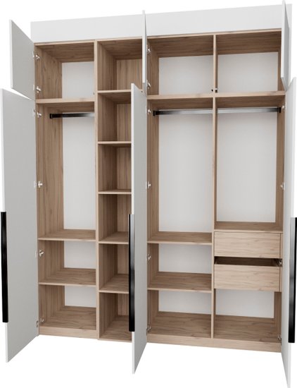 ✅Ключевые характеристикиШкаф представляет собой готовую к сборке модульную конструкцию с распашными дверцами; предназначенную для хранения общего назначения в различных помещениях: детской; жилой комнате; столовой; прихожей; спальне и офисе. Высота изделия регулируется с помощью доборных элементов в диапазоне от 2450 до 2740 мм; что позволяет адаптировать шкаф под разные потолки и ниши. Фасады выполнены из ЛДСП класса Е0,5 с качественной кромкой ПВХ; обеспечивающей долговечность и безопасность.✅Преимущества и отличияМодель оснащена фурнитурой Blum и Hafele с доводчиками и TipOn-механизмами; что гарантирует плавное и бесшумное закрывание дверей и ящиков. Металлические регулируемые опоры компенсируют неровности пола; а специальные крепления защищают шкаф от опрокидывания; повышая безопасность эксплуатации. Фасады идут до пола без видимого цоколя; что придаёт изделию современный и аккуратный внешний вид.✅ПрактичностьВнутреннее наполнение включает ящики; полки и штангу для одежды; что обеспечивает удобное и функциональное хранение различных вещей. Направляющие скрытого монтажа с доводчиками повышают комфорт использования и долговечность конструкции. Шкаф поставляется в разобранном виде; что облегчает транспортировку и сборку даже в узких помещениях.✅УникальностьДвухстороннее исполнение позволяет использовать шкаф в нишах; углах или вдоль стены; что расширяет возможности его размещения. Использование сертифицированных материалов и фурнитуры премиум-класса подчёркивает высокое качество и надёжность изделия; делая его отличным решением для тех; кто ценит функциональность и стиль в одном продукте.✅Ключевые характеристикиШкаф представляет собой готовую к сборке модульную конструкцию с распашными дверцами; предназначенную для хранения общего назначения в различных помещениях: детской; жилой комнате; столовой; прихожей; спальне и офисе. Высота изделия регулируется с помощью доборных элементов в диапазоне от 2450 до 2740 мм; что позволяет адаптировать шкаф под разные потолки и ниши. Фасады выполнены из ЛДСП класса Е0,5 с качественной кромкой ПВХ; обеспечивающей долговечность и безопасность.✅Преимущества и отличияМодель оснащена фурнитурой Blum и Hafele с доводчиками и TipOn-механизмами; что гарантирует плавное и бесшумное закрывание дверей и ящиков. Металлические регулируемые опоры компенсируют неровности пола; а специальные крепления защищают шкаф от опрокидывания; повышая безопасность эксплуатации. Фасады идут до пола без видимого цоколя; что придаёт изделию современный и аккуратный внешний вид.✅ПрактичностьВнутреннее наполнение включает ящики; полки и штангу для одежды; что обеспечивает удобное и функциональное хранение различных вещей. Направляющие скрытого монтажа с доводчиками повышают комфорт использования и долговечность конструкции. Шкаф поставляется в разобранном виде; что облегчает транспортировку и сборку даже в узких помещениях.✅УникальностьДвухстороннее исполнение позволяет использовать шкаф в нишах; углах или вдоль стены; что расширяет возможности его размещения. Использование сертифицированных материалов и фурнитуры премиум-класса подчёркивает высокое качество и надёжность изделия; делая его отличным решением для тех; кто ценит функциональность и стиль в одном продукте.