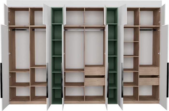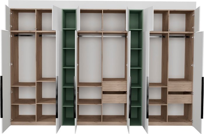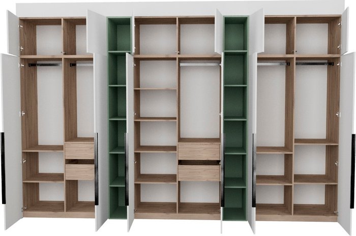 ✅Ключевые характеристикиШкаф представляет собой готовую к установке модульную конструкцию с распашными дверцами; предназначенную для хранения одежды и предметов общего назначения. Высота изделия регулируется с помощью доборных элементов в диапазоне от 2450 до 2740 мм; что позволяет адаптировать шкаф под разные помещения. Материалы корпуса и фасадов выполнены из ЛДСП класса Е0.5 с качественной кромкой ПВХ; обеспечивая долговечность и экологичность.✅Преимущества и отличияМодель оснащена фурнитурой Blum и Hafele с доводчиками и TipOn-механизмами; что гарантирует плавное и бесшумное закрывание дверей. Регулируемые металлические опоры компенсируют неровности пола; а крепления защищают шкаф от опрокидывания; повышая безопасность эксплуатации. Двухстороннее исполнение и наличие антресоли расширяют функциональность и удобство использования.✅ПрактичностьВнутреннее наполнение включает 4 ящика; что обеспечивает разнообразные варианты хранения. Открытые полки позволяют разместить декоративные элементы или часто используемые вещи. Скрытые направляющие с доводчиками повышают комфорт эксплуатации; а фасады до пола без видимого цоколя создают современный и аккуратный внешний вид.✅УникальностьДанная модель выделяется модульной конструкцией; позволяющей легко собрать шкаф даже в узких помещениях без длительного ожидания изготовления. Использование сертифицированных материалов и фурнитуры высокого качества обеспечивает надежность и долговечность. Регулируемая высота и продуманная система безопасности делают шкаф универсальным решением для различных интерьеров.✅Ключевые характеристикиШкаф представляет собой готовую к установке модульную конструкцию с распашными дверцами; предназначенную для хранения одежды и предметов общего назначения. Высота изделия регулируется с помощью доборных элементов в диапазоне от 2450 до 2740 мм; что позволяет адаптировать шкаф под разные помещения. Материалы корпуса и фасадов выполнены из ЛДСП класса Е0.5 с качественной кромкой ПВХ; обеспечивая долговечность и экологичность.✅Преимущества и отличияМодель оснащена фурнитурой Blum и Hafele с доводчиками и TipOn-механизмами; что гарантирует плавное и бесшумное закрывание дверей. Регулируемые металлические опоры компенсируют неровности пола; а крепления защищают шкаф от опрокидывания; повышая безопасность эксплуатации. Двухстороннее исполнение и наличие антресоли расширяют функциональность и удобство использования.✅ПрактичностьВнутреннее наполнение включает 4 ящика; что обеспечивает разнообразные варианты хранения. Открытые полки позволяют разместить декоративные элементы или часто используемые вещи. Скрытые направляющие с доводчиками повышают комфорт эксплуатации; а фасады до пола без видимого цоколя создают современный и аккуратный внешний вид.✅УникальностьДанная модель выделяется модульной конструкцией; позволяющей легко собрать шкаф даже в узких помещениях без длительного ожидания изготовления. Использование сертифицированных материалов и фурнитуры высокого качества обеспечивает надежность и долговечность. Регулируемая высота и продуманная система безопасности делают шкаф универсальным решением для различных интерьеров.