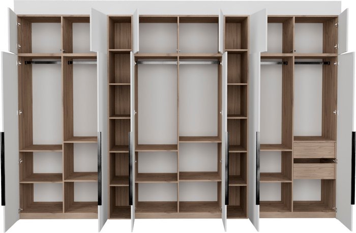 ✅Ключевые характеристикиШкаф распашной предназначен для хранения общего назначения и подходит для различных помещений: детской; жилой комнаты; столовой; прихожей; спальни и офиса. Модель имеет модульную конструкцию; выполнена из ЛДСП класса Е0,5 с сертифицированным качеством ЕАЭС. Размеры шкафа внушительные: ширина 387.2 см; глубина 60.6 см; высота регулируется в диапазоне от 2450 до 2740 мм с помощью доборных элементов.✅Преимущества и отличияФасады выполнены до пола без видимого цоколя; что придаёт изделию современный и аккуратный вид. Используется фурнитура известных брендов Blum и Hafele с доводчиками и TipOn-механизмами; обеспечивающими плавное и бесшумное закрывание дверей. Металлические регулируемые опоры компенсируют неровности пола; а крепления защищают шкаф от опрокидывания; что повышает безопасность эксплуатации.✅ПрактичностьШкаф легко собирается даже в узких помещениях; благодаря продуманной конструкции. Внутреннее наполнение включает ящики; полки и штангу; что позволяет удобно организовать хранение различных вещей. Направляющие скрытого монтажа с доводчиками обеспечивают комфортное использование и долговечность механизма открывания.✅УникальностьДвухстороннее исполнение шкафа расширяет возможности его размещения в помещении. Использование ЛДСП с кромкой ПВХ гарантирует устойчивость к износу и долговечность. Отсутствие мебели с видимым цоколем и применение фирменной фурнитуры с инновационными механизмами делают этот шкаф современным и функциональным решением для дома и офиса.✅Ключевые характеристикиШкаф распашной предназначен для хранения общего назначения и подходит для различных помещений: детской; жилой комнаты; столовой; прихожей; спальни и офиса. Модель имеет модульную конструкцию; выполнена из ЛДСП класса Е0,5 с сертифицированным качеством ЕАЭС. Размеры шкафа внушительные: ширина 387.2 см; глубина 60.6 см; высота регулируется в диапазоне от 2450 до 2740 мм с помощью доборных элементов.✅Преимущества и отличияФасады выполнены до пола без видимого цоколя; что придаёт изделию современный и аккуратный вид. Используется фурнитура известных брендов Blum и Hafele с доводчиками и TipOn-механизмами; обеспечивающими плавное и бесшумное закрывание дверей. Металлические регулируемые опоры компенсируют неровности пола; а крепления защищают шкаф от опрокидывания; что повышает безопасность эксплуатации.✅ПрактичностьШкаф легко собирается даже в узких помещениях; благодаря продуманной конструкции. Внутреннее наполнение включает ящики; полки и штангу; что позволяет удобно организовать хранение различных вещей. Направляющие скрытого монтажа с доводчиками обеспечивают комфортное использование и долговечность механизма открывания.✅УникальностьДвухстороннее исполнение шкафа расширяет возможности его размещения в помещении. Использование ЛДСП с кромкой ПВХ гарантирует устойчивость к износу и долговечность. Отсутствие мебели с видимым цоколем и применение фирменной фурнитуры с инновационными механизмами делают этот шкаф современным и функциональным решением для дома и офиса.
