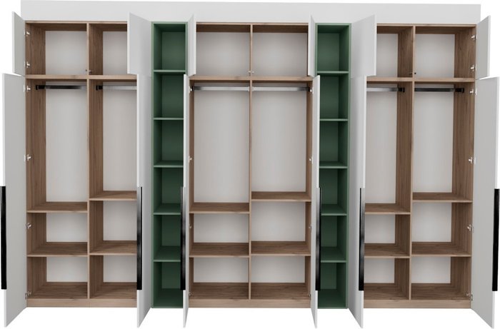 ✅Ключевые характеристикиШкаф представляет собой готовую к установке модульную конструкцию с распашными дверцами и вместительным внутренним наполнением; включающим 12 полок и 6 штанг для одежды. Высота изделия регулируется с помощью доборных элементов в диапазоне от 2450 до 2740 мм; что позволяет адаптировать шкаф под разные помещения. Материалы корпуса и фасадов выполнены из ЛДСП класса Е0.5 с качественной кромкой ПВХ; обеспечивая долговечность и экологичность.✅Преимущества и отличияМодель оснащена фурнитурой Blum и Hafele с доводчиками и TipOn-механизмами для удобного и бесшумного открывания дверей. Регулируемые металлические опоры компенсируют неровности пола; а крепления защищают шкаф от опрокидывания; что повышает безопасность эксплуатации. Фасады выполнены до пола без видимого цоколя; что придаёт изделию современный и аккуратный внешний вид.✅ПрактичностьШкаф подходит для различных помещений: детской; жилой комнаты; столовой; прихожей; спальни; офиса и гардеробной. Наличие 10 открытых полок и двухстороннее исполнение расширяют возможности хранения и организации пространства. Поставка в разобранном виде облегчает транспортировку и сборку даже в узких помещениях.✅УникальностьДанная модель выделяется использованием сертифицированных материалов и продуманной эргономикой; включая скрытые направляющие с доводчиками и механизм открытия при нажатии. Высокое качество фурнитуры и возможность регулировки высоты делают шкаф универсальным решением для современного интерьера с акцентом на комфорт и безопасность.✅Ключевые характеристикиШкаф представляет собой готовую к установке модульную конструкцию с распашными дверцами и вместительным внутренним наполнением; включающим 12 полок и 6 штанг для одежды. Высота изделия регулируется с помощью доборных элементов в диапазоне от 2450 до 2740 мм; что позволяет адаптировать шкаф под разные помещения. Материалы корпуса и фасадов выполнены из ЛДСП класса Е0.5 с качественной кромкой ПВХ; обеспечивая долговечность и экологичность.✅Преимущества и отличияМодель оснащена фурнитурой Blum и Hafele с доводчиками и TipOn-механизмами для удобного и бесшумного открывания дверей. Регулируемые металлические опоры компенсируют неровности пола; а крепления защищают шкаф от опрокидывания; что повышает безопасность эксплуатации. Фасады выполнены до пола без видимого цоколя; что придаёт изделию современный и аккуратный внешний вид.✅ПрактичностьШкаф подходит для различных помещений: детской; жилой комнаты; столовой; прихожей; спальни; офиса и гардеробной. Наличие 10 открытых полок и двухстороннее исполнение расширяют возможности хранения и организации пространства. Поставка в разобранном виде облегчает транспортировку и сборку даже в узких помещениях.✅УникальностьДанная модель выделяется использованием сертифицированных материалов и продуманной эргономикой; включая скрытые направляющие с доводчиками и механизм открытия при нажатии. Высокое качество фурнитуры и возможность регулировки высоты делают шкаф универсальным решением для современного интерьера с акцентом на комфорт и безопасность.