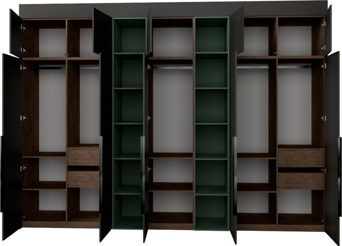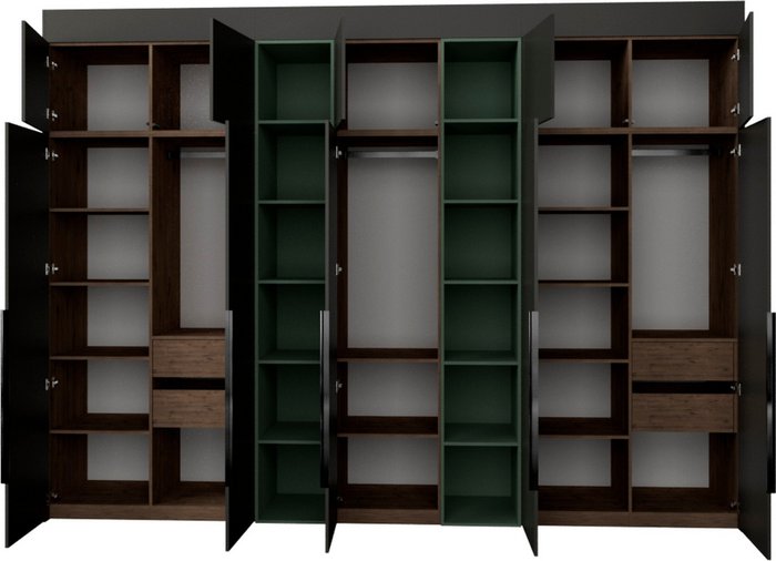 ✅Ключевые характеристикиШкаф распашной предназначен для хранения общего назначения и подходит для различных помещений: детской; жилой комнаты; столовой; прихожей; спальни и офиса. Модель имеет модульную конструкцию из ЛДСП с фасадами до пола и регулируемую высоту от 2450 до 2740 мм. Общие габариты составляют 353.2 см в ширину; вес изделия 548.46 кг.✅Преимущества и отличияИспользование фурнитуры Blum и Hafele с доводчиками и tip-on механизмами обеспечивает плавное и бесшумное закрывание дверей и ящиков. Регулируемые металлические опоры компенсируют неровности пола; а крепления защищают шкаф от опрокидывания; что повышает безопасность и удобство эксплуатации. Фасады без видимого цоколя создают современный и аккуратный внешний вид.✅ПрактичностьВнутреннее наполнение включает ящики; полки и штангу; что позволяет организовать хранение одежды и других вещей максимально удобно. Направляющие скрытого монтажа с доводчиками обеспечивают долговечность и комфорт использования. Шкаф поставляется в разобранном виде; что облегчает транспортировку и сборку даже в узких помещениях.✅УникальностьМодель выделяется двухсторонним исполнением; что расширяет возможности размещения в комнате. Использование ЛДСП класса Е0.5 с сертифицированным качеством ЕАЭС гарантирует экологичность и безопасность материала. Высота регулируется с помощью доборных элементов; что позволяет адаптировать шкаф под индивидуальные параметры помещения.✅Ключевые характеристикиШкаф распашной предназначен для хранения общего назначения и подходит для различных помещений: детской; жилой комнаты; столовой; прихожей; спальни и офиса. Модель имеет модульную конструкцию из ЛДСП с фасадами до пола и регулируемую высоту от 2450 до 2740 мм. Общие габариты составляют 353.2 см в ширину; вес изделия 548.46 кг.✅Преимущества и отличияИспользование фурнитуры Blum и Hafele с доводчиками и tip-on механизмами обеспечивает плавное и бесшумное закрывание дверей и ящиков. Регулируемые металлические опоры компенсируют неровности пола; а крепления защищают шкаф от опрокидывания; что повышает безопасность и удобство эксплуатации. Фасады без видимого цоколя создают современный и аккуратный внешний вид.✅ПрактичностьВнутреннее наполнение включает ящики; полки и штангу; что позволяет организовать хранение одежды и других вещей максимально удобно. Направляющие скрытого монтажа с доводчиками обеспечивают долговечность и комфорт использования. Шкаф поставляется в разобранном виде; что облегчает транспортировку и сборку даже в узких помещениях.✅УникальностьМодель выделяется двухсторонним исполнением; что расширяет возможности размещения в комнате. Использование ЛДСП класса Е0.5 с сертифицированным качеством ЕАЭС гарантирует экологичность и безопасность материала. Высота регулируется с помощью доборных элементов; что позволяет адаптировать шкаф под индивидуальные параметры помещения.