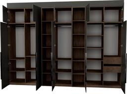 ✅Ключевые характеристикиШкаф представляет собой готовую к установке модульную конструкцию с пятью распашными дверцами; предназначенную для хранения общего назначения в различных помещениях: детской; жилой комнате; столовой; прихожей; спальне и офисе. Его размеры составляют 353.2 на 60.6 на 274 см; что позволяет эффективно использовать пространство. Высота регулируется с помощью доборных элементов в диапазоне от 2450 до 2740 мм; что обеспечивает гибкость под разные потолки.✅Преимущества и отличияМодель оснащена фурнитурой Blum и Hafele с доводчиками и TipOn-механизмами; что гарантирует плавное и бесшумное закрывание дверей. Металлические регулируемые опоры компенсируют неровности пола; а крепления защищают шкаф от опрокидывания; повышая безопасность эксплуатации. Фасады выполнены из ЛДСП класса Е0,5 с сертифицированным качеством ЕАЭС; что обеспечивает экологичность и долговечность.✅ПрактичностьШкаф легко собирается даже в узких помещениях и подходит для установки в нишу; угол или вдоль стены. Наполнение включает ящики; полки и штангу; что позволяет организовать хранение одежды и других вещей. Направляющие скрытого монтажа с доводчиками обеспечивают удобство и надежность использования. Форма поставки - в разобранном виде; что облегчает транспортировку.✅УникальностьДвухстороннее исполнение фасадов без видимого цоколя создает современный и аккуратный внешний вид. Высота регулируется с помощью доборных элементов; что редко встречается в готовой мебели. Использование качественной фурнитуры с TipOn-механизмами и доводчиками повышает комфорт эксплуатации и долговечность изделия.✅Ключевые характеристикиШкаф представляет собой готовую к установке модульную конструкцию с пятью распашными дверцами; предназначенную для хранения общего назначения в различных помещениях: детской; жилой комнате; столовой; прихожей; спальне и офисе. Его размеры составляют 353.2 на 60.6 на 274 см; что позволяет эффективно использовать пространство. Высота регулируется с помощью доборных элементов в диапазоне от 2450 до 2740 мм; что обеспечивает гибкость под разные потолки.✅Преимущества и отличияМодель оснащена фурнитурой Blum и Hafele с доводчиками и TipOn-механизмами; что гарантирует плавное и бесшумное закрывание дверей. Металлические регулируемые опоры компенсируют неровности пола; а крепления защищают шкаф от опрокидывания; повышая безопасность эксплуатации. Фасады выполнены из ЛДСП класса Е0,5 с сертифицированным качеством ЕАЭС; что обеспечивает экологичность и долговечность.✅ПрактичностьШкаф легко собирается даже в узких помещениях и подходит для установки в нишу; угол или вдоль стены. Наполнение включает ящики; полки и штангу; что позволяет организовать хранение одежды и других вещей. Направляющие скрытого монтажа с доводчиками обеспечивают удобство и надежность использования. Форма поставки - в разобранном виде; что облегчает транспортировку.✅УникальностьДвухстороннее исполнение фасадов без видимого цоколя создает современный и аккуратный внешний вид. Высота регулируется с помощью доборных элементов; что редко встречается в готовой мебели. Использование качественной фурнитуры с TipOn-механизмами и доводчиками повышает комфорт эксплуатации и долговечность изделия.