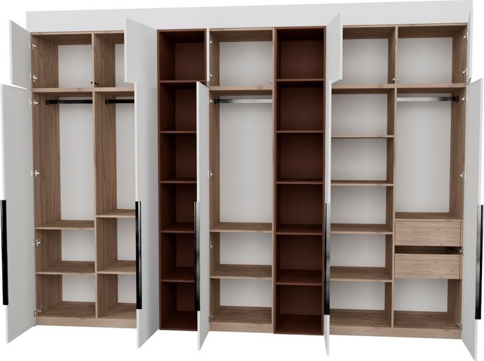 ✅Ключевые характеристикиШкаф распашной предназначен для хранения одежды; книг и предметов общего назначения в различных помещениях: детской; жилой комнате; столовой; прихожей; спальне; офисе и гардеробной. Модель выполнена из ЛДСП класса Е0.5 с сертифицированным качеством ЕАЭС; что гарантирует безопасность и долговечность. Размеры шкафа составляют 353.2 см в ширину; что позволяет вместить большое количество вещей.✅Преимущества и отличияОсобенностью конструкции является модульный принцип; позволяющий легко собирать шкаф даже в узких помещениях. Высота регулируется с помощью доборных элементов в диапазоне от 2450 до 2740 мм. Фасады выполнены до пола без видимого цоколя; что придаёт изделию современный и аккуратный вид. Использование фурнитуры Blum и Hafele с доводчиками и TipOn-механизмами обеспечивает плавное и бесшумное открывание дверей.✅ПрактичностьШкаф оснащён регулируемыми металлическими опорами; компенсирующими неровности пола; а крепления защищают от опрокидывания; что повышает безопасность эксплуатации. Внутреннее наполнение включает 2 ящика; а также 10 открытых полок для удобного размещения различных предметов. Направляющие скрытого монтажа с доводчиками обеспечивают комфорт и долговечность использования.✅УникальностьДвухстороннее исполнение шкафа позволяет использовать его в нишах; углах или вдоль стены; что расширяет возможности размещения в интерьере. Фасады и корпус выполнены из ЛДСП с ПВХ кромкой; что повышает износостойкость и облегчает уход. Модель поставляется в разобранном виде; что упрощает транспортировку и монтаж без длительного ожидания изготовления.✅Ключевые характеристикиШкаф распашной предназначен для хранения одежды; книг и предметов общего назначения в различных помещениях: детской; жилой комнате; столовой; прихожей; спальне; офисе и гардеробной. Модель выполнена из ЛДСП класса Е0.5 с сертифицированным качеством ЕАЭС; что гарантирует безопасность и долговечность. Размеры шкафа составляют 353.2 см в ширину; что позволяет вместить большое количество вещей.✅Преимущества и отличияОсобенностью конструкции является модульный принцип; позволяющий легко собирать шкаф даже в узких помещениях. Высота регулируется с помощью доборных элементов в диапазоне от 2450 до 2740 мм. Фасады выполнены до пола без видимого цоколя; что придаёт изделию современный и аккуратный вид. Использование фурнитуры Blum и Hafele с доводчиками и TipOn-механизмами обеспечивает плавное и бесшумное открывание дверей.✅ПрактичностьШкаф оснащён регулируемыми металлическими опорами; компенсирующими неровности пола; а крепления защищают от опрокидывания; что повышает безопасность эксплуатации. Внутреннее наполнение включает 2 ящика; а также 10 открытых полок для удобного размещения различных предметов. Направляющие скрытого монтажа с доводчиками обеспечивают комфорт и долговечность использования.✅УникальностьДвухстороннее исполнение шкафа позволяет использовать его в нишах; углах или вдоль стены; что расширяет возможности размещения в интерьере. Фасады и корпус выполнены из ЛДСП с ПВХ кромкой; что повышает износостойкость и облегчает уход. Модель поставляется в разобранном виде; что упрощает транспортировку и монтаж без длительного ожидания изготовления.