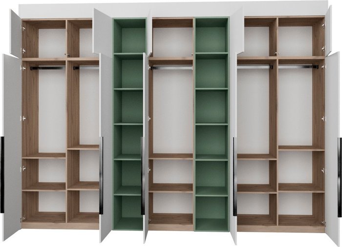 ✅Ключевые характеристикиШкаф представляет собой готовую к установке модульную конструкцию с распашными дверцами и пятью дверями. Высота регулируется с помощью доборных элементов в диапазоне от 2450 до 2740 мм; что позволяет адаптировать мебель под разные помещения. Внутреннее наполнение включает 10 полок и 5 штанг для одежды; что обеспечивает удобное хранение как общего назначения; так и платяное. Материалы корпуса и фасада выполнены из ЛДСП класса Е0.5 с качественной кромкой ПВХ; что гарантирует долговечность и безопасность.✅Преимущества и отличияИспользование фурнитуры Blum и Hafele с доводчиками и TipOn-механизмами обеспечивает плавное и бесшумное закрывание дверей. Регулируемые металлические опоры компенсируют неровности пола; а крепления защищают шкаф от опрокидывания; что повышает безопасность эксплуатации. Фасады выполнены до пола без видимого цоколя; что придаёт изделию современный и аккуратный внешний вид.✅ПрактичностьШкаф легко собирается даже в узких помещениях и подходит для установки в нишу; угол или вдоль стены. Наличие антресоли и открытых полок расширяет возможности хранения и организации пространства. Направляющие скрытого монтажа с доводчиками обеспечивают удобство использования и долговечность механизма открывания. Двухстороннее исполнение позволяет максимально эффективно использовать доступное пространство.✅УникальностьДанная модель выделяется сочетанием качественных материалов и продуманной конструкции; которая позволяет регулировать высоту и адаптировать шкаф под различные условия. Использование сертифицированных материалов ЕАЭС и современная фурнитура с механизмами TipOn делают изделие надежным и удобным в эксплуатации; что выгодно отличает его среди типичных решений в сегменте модульной мебели.✅Ключевые характеристикиШкаф представляет собой готовую к установке модульную конструкцию с распашными дверцами и пятью дверями. Высота регулируется с помощью доборных элементов в диапазоне от 2450 до 2740 мм; что позволяет адаптировать мебель под разные помещения. Внутреннее наполнение включает 10 полок и 5 штанг для одежды; что обеспечивает удобное хранение как общего назначения; так и платяное. Материалы корпуса и фасада выполнены из ЛДСП класса Е0.5 с качественной кромкой ПВХ; что гарантирует долговечность и безопасность.✅Преимущества и отличияИспользование фурнитуры Blum и Hafele с доводчиками и TipOn-механизмами обеспечивает плавное и бесшумное закрывание дверей. Регулируемые металлические опоры компенсируют неровности пола; а крепления защищают шкаф от опрокидывания; что повышает безопасность эксплуатации. Фасады выполнены до пола без видимого цоколя; что придаёт изделию современный и аккуратный внешний вид.✅ПрактичностьШкаф легко собирается даже в узких помещениях и подходит для установки в нишу; угол или вдоль стены. Наличие антресоли и открытых полок расширяет возможности хранения и организации пространства. Направляющие скрытого монтажа с доводчиками обеспечивают удобство использования и долговечность механизма открывания. Двухстороннее исполнение позволяет максимально эффективно использовать доступное пространство.✅УникальностьДанная модель выделяется сочетанием качественных материалов и продуманной конструкции; которая позволяет регулировать высоту и адаптироват