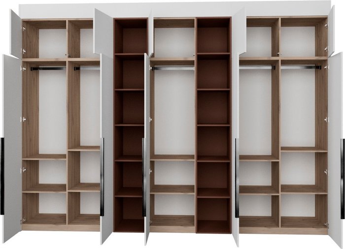 ✅Ключевые характеристикиШкаф представляет собой готовую к установке модульную конструкцию; предназначенную для хранения одежды; книг и предметов общего назначения. Высота регулируется с помощью доборных элементов в диапазоне от 2450 до 2740 мм; что позволяет адаптировать мебель под разные помещения. Фасады выполнены из ЛДСП класса Е0.5 с доводчиками и TipOn-механизмами; обеспечивающими плавное и бесшумное закрывание дверей.✅Преимущества и отличияМодель оснащена фурнитурой Blum и Hafele; что гарантирует надежность и долговечность эксплуатации. Регулируемые металлические опоры компенсируют неровности пола; а крепления защищают шкаф от опрокидывания; повышая безопасность использования. Двухстороннее исполнение и наличие антресоли расширяют функциональность и удобство хранения.✅ПрактичностьШкаф легко собирается даже в узких помещениях; что упрощает монтаж и экономит время. Наличие 10 открытых полок и 5 штанг позволяет удобно организовать пространство для хранения различных вещей. Скрытые направляющие с доводчиками обеспечивают эстетичный внешний вид и комфорт при эксплуатации.✅УникальностьОтсутствие видимого цоколя и фасады; доходящие до пола; создают современный и стильный дизайн. Использование сертифицированных материалов и качественной фурнитуры выделяет эту модель среди типичных решений; предлагая сочетание надежности; функциональности и эстетики.✅Ключевые характеристикиШкаф представляет собой готовую к установке модульную конструкцию; предназначенную для хранения одежды; книг и предметов общего назначения. Высота регулируется с помощью доборных элементов в диапазоне от 2450 до 2740 мм; что позволяет адаптировать мебель под разные помещения. Фасады выполнены из ЛДСП класса Е0.5 с доводчиками и TipOn-механизмами; обеспечивающими плавное и бесшумное закрывание дверей.✅Преимущества и отличияМодель оснащена фурнитурой Blum и Hafele; что гарантирует надежность и долговечность эксплуатации. Регулируемые металлические опоры компенсируют неровности пола; а крепления защищают шкаф от опрокидывания; повышая безопасность использования. Двухстороннее исполнение и наличие антресоли расширяют функциональность и удобство хранения.✅ПрактичностьШкаф легко собирается даже в узких помещениях; что упрощает монтаж и экономит время. Наличие 10 открытых полок и 5 штанг позволяет удобно организовать пространство для хранения различных вещей. Скрытые направляющие с доводчиками обеспечивают эстетичный внешний вид и комфорт при эксплуатации.✅УникальностьОтсутствие видимого цоколя и фасады; доходящие до пола; создают современный и стильный дизайн. Использование сертифицированных материалов и качественной фурнитуры выделяет эту модель среди типичных решений; предлагая сочетание надежности; функциональности и эстетики.
