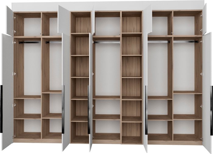 ✅Ключевые характеристикиШкаф распашной с модульной конструкцией предназначен для хранения общего назначения в различных помещениях: детской; жилой комнате; столовой; прихожей; спальне и офисе. Изготовлен из ЛДСП класса Е0,5 с сертифицированным качеством ЕАЭС; что гарантирует безопасность и долговечность. Размеры изделия составляют 353.2 на 60.6 на 274 см; что позволяет эффективно использовать пространство. Фасады выполнены из ЛДСП с покрытием белого цвета; каркас - из светлого дерева; что придаёт мебели современный и универсальный вид.✅Преимущества и отличияМодель оснащена фурнитурой Blum и Hafele с доводчиками и TipOn-механизмами; обеспечивающими плавное и бесшумное закрывание дверей. Регулируемые металлические опоры компенсируют неровности пола; а крепления защищают шкаф от опрокидывания; что повышает безопасность эксплуатации. Фасады идут до пола без видимого цоколя; создавая цельный и аккуратный внешний вид. Готовая к установке конструкция легко собирается даже в узких помещениях.✅ПрактичностьШкаф имеет двухстороннее исполнение с распашными дверцами; оснащёнными скрытыми направляющими с доводчиками. Внутреннее наполнение включает полки и штангу для удобного размещения одежды и других предметов. Высота изделия регулируется с помощью доборных элементов в диапазоне от 2450 до 2740 мм; что позволяет адаптировать шкаф под разные потолки и ниши. Форма поставки - в разобранном виде; что облегчает транспортировку и монтаж.✅УникальностьОсобенностью является использование высококачественной фурнитуры с механизмами TipOn; которые позволяют открывать дверцы лёгким нажатием без ручек. Регулируемые металлические опоры и защита от опрокидывания обеспечивают дополнительную устойчивость и безопасность. Отсутствие видимого цоколя и фасады до пола создают современный минималистичный дизайн; выгодно выделяющий изделие среди аналогов.✅Ключевые характеристикиШкаф распашной с модульной конструкцией предназначен для хранения общего назначения в различных помещениях: детской; жилой комнате; столовой; прихожей; спальне и офисе. Изготовлен из ЛДСП класса Е0,5 с сертифицированным качеством ЕАЭС; что гарантирует безопасность и долговечность. Размеры изделия составляют 353.2 на 60.6 на 274 см; что позволяет эффективно использовать пространство. Фасады выполнены из ЛДСП с покрытием белого цвета; каркас - из светлого дерева; что придаёт мебели современный и универсальный вид.✅Преимущества и отличияМодель оснащена фурнитурой Blum и Hafele с доводчиками и TipOn-механизмами; обеспечивающими плавное и бесшумное закрывание дверей. Регулируемые металлические опоры компенсируют неровности пола; а крепления защищают шкаф от опрокидывания; что повышает безопасность эксплуатации. Фасады идут до пола без видимого цоколя; создавая цельный и аккуратный внешний вид. Готовая к установке конструкция легко собирается даже в узких помещениях.✅ПрактичностьШкаф имеет двухстороннее исполнение с распашными дверцами; оснащёнными скрытыми направляющими с доводчиками. Внутреннее наполнение включает полки и штангу для удобного размещения одежды и других предметов. Высота изделия регулируется с помощью доборных элементов в диапазоне от 2450 до 2740 мм; что позволяет адаптировать шкаф под разные потолки и ниши. Форма поставки - в разобранном виде; что облегчает транспо