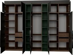 • ✅Ключевые характеристикиШкаф распашной предназначен для хранения общего назначения и подходит для различных помещений: детской; жилой комнаты; столовой; прихожей; спальни и офиса. Модель имеет модульную конструкцию из ЛДСП с фасадами до пола и регулируемой высотой от 2450 до 2740 мм. Общие габариты составляют 333.2 на 60.6 на 274 см; что обеспечивает вместительность и удобство использования.✅Преимущества и отличияИспользование качественной фурнитуры Blum и Hafele с доводчиками и tip-on механизмами гарантирует плавное и бесшумное открывание дверей и ящиков. Металлические регулируемые опоры компенсируют неровности пола; а крепления защищают шкаф от опрокидывания; что повышает безопасность и устойчивость конструкции.✅ПрактичностьШкаф поставляется в разобранном виде; что облегчает транспортировку и сборку даже в узких помещениях. Внутреннее наполнение включает ящики; полки и штангу для одежды; а направляющие скрытого монтажа с доводчиками обеспечивают комфортное использование. Фасады выполнены из ЛДСП класса Е0.5 с ПВХ кромкой; что гарантирует экологичность и долговечность.✅УникальностьДвухстороннее исполнение и фасады без видимого цоколя создают современный и аккуратный внешний вид. Регулируемая высота с помощью доборных элементов позволяет адаптировать шкаф под индивидуальные параметры помещения. Сертифицированное качество и использование проверенных материалов делают изделие надежным решением для дома и офиса. ✅Ключевые характеристикиШкаф распашной предназначен для хранения общего назначения и подходит для различных помещений: детской; жилой комнаты; столовой; прихожей; спальни и офиса. Модель имеет модульную конструкцию из ЛДСП с фасадами до пола и регулируемой высотой от 2450 до 2740 мм. Общие габариты составляют 333.2 на 60.6 на 274 см; что обеспечивает вместительность и удобство использования.✅Преимущества и отличияИспользование качественной фурнитуры Blum и Hafele с доводчиками и tip-on механизмами гарантирует плавное и бесшумное открывание дверей и ящиков. Металлические регулируемые опоры компенсируют неровности пола; а крепления защищают шкаф от опрокидывания; что повышает безопасность и устойчивость конструкции.✅ПрактичностьШкаф поставляется в разобранном виде; что облегчает транспортировку и сборку даже в узких помещениях. Внутреннее наполнение включает ящики; полки и штангу для одежды; а направляющие скрытого монтажа с доводчиками обеспечивают комфортное использование. Фасады выполнены из ЛДСП класса Е0.5 с ПВХ кромкой; что гарантирует экологичность и долговечность.✅УникальностьДвухстороннее исполнение и фасады без видимого цоколя создают современный и аккуратный внешний вид. Регулируемая высота с помощью доборных элементов позволяет адаптировать шкаф под индивидуальные параметры помещения. Сертифицированное качество и использование проверенных материалов делают изделие надежным решением для дома и офиса.