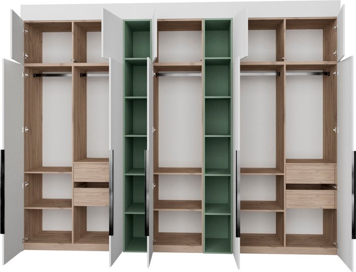 ✅Ключевые характеристикиШкаф представляет собой готовую к установке модульную конструкцию с распашными дверцами; предназначенную для хранения одежды и предметов общего назначения. Его размеры составляют 333.2 в ширину; что позволяет разместить его в нише; углу или вдоль стены. Высота регулируется с помощью дополнительных элементов; обеспечивая гибкость под разные помещения. Материалы корпуса и фасада выполнены из ЛДСП класса Е0.5 с сертифицированным качеством; что гарантирует экологичность и долговечность.✅Преимущества и отличияМодель оснащена фурнитурой Blum и Hafele с доводчиками и TipOn-механизмами; обеспечивающими плавное и бесшумное закрывание дверей. Регулируемые металлические опоры компенсируют неровности пола; а крепления защищают шкаф от опрокидывания; что повышает безопасность эксплуатации. Фасады выполнены до пола без видимого цоколя; что придаёт изделию современный и аккуратный внешний вид.✅ПрактичностьВнутреннее наполнение включает 4 ящика; что обеспечивает удобное и функциональное хранение различных вещей. Направляющие скрытого монтажа с доводчиками повышают комфорт использования. Наличие антресоли и открытых полок расширяет возможности организации пространства. Шкаф поставляется в разобранном виде; что облегчает транспортировку и сборку даже в узких помещениях.✅УникальностьДвухстороннее исполнение позволяет использовать шкаф с обеих сторон; что выгодно отличает его от стандартных моделей. Использование высококачественной фурнитуры с механизмами TipOn и доводчиками обеспечивает современный уровень комфорта и долговечности. Регулируемая высота и металлические опоры делают конструкцию универсальной и адаптируемой к разным условиям установки.✅Ключевые характеристикиШкаф представляет собой готовую к установке модульную конструкцию с распашными дверцами; предназначенную для хранения одежды и предметов общего назначения. Его размеры составляют 333.2 в ширину; что позволяет разместить его в нише; углу или вдоль стены. Высота регулируется с помощью дополнительных элементов; обеспечивая гибкость под разные помещения. Материалы корпуса и фасада выполнены из ЛДСП класса Е0.5 с сертифицированным качеством; что гарантирует экологичность и долговечность.✅Преимущества и отличияМодель оснащена фурнитурой Blum и Hafele с доводчиками и TipOn-механизмами; обеспечивающими плавное и бесшумное закрывание дверей. Регулируемые металлические опоры компенсируют неровности пола; а крепления защищают шкаф от опрокидывания; что повышает безопасность эксплуатации. Фасады выполнены до пола без видимого цоколя; что придаёт изделию современный и аккуратный внешний вид.✅ПрактичностьВнутреннее наполнение включает 4 ящика; что обеспечивает удобное и функциональное хранение различных вещей. Направляющие скрытого монтажа с доводчиками повышают комфорт использования. Наличие антресоли и открытых полок расширяет возможности организации пространства. Шкаф поставляется в разобранном виде; что облегчает транспортировку и сборку даже в узких помещениях.✅УникальностьДвухстороннее исполнение позволяет использовать шкаф с обеих сторон; что выгодно отличает его от стандартных моделей. Использование высококачественной фурнитуры с механизмами TipOn и доводчиками обеспечивает современный уровень комфорта и долговечнос