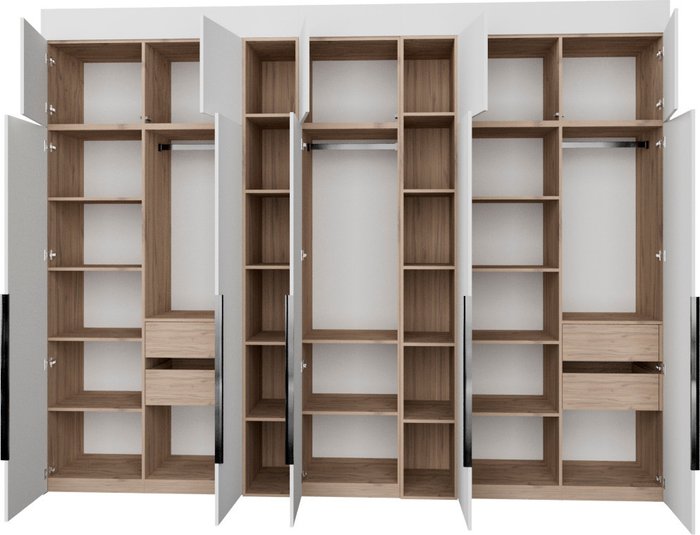 ✅Ключевые характеристикиШкаф представляет собой готовую к установке модульную конструкцию с распашными дверцами; предназначенную для хранения общего назначения в различных помещениях: детской; жилой комнате; столовой; прихожей; спальне и офисе. Высота изделия регулируется с помощью дополнительных элементов в диапазоне от 2450 до 2740 мм; что позволяет адаптировать шкаф под разные условия. Фасады выполнены из ЛДСП класса Е0,5 с качественной кромкой ПВХ; что обеспечивает долговечность и безопасность.✅Преимущества и отличияВ конструкции используются фурнитура Blum и Hafele с доводчиками и TipOn-механизмами; обеспечивающими плавное и бесшумное закрывание дверей. Металлические регулируемые опоры компенсируют неровности пола; а специальные крепления защищают шкаф от опрокидывания; что повышает безопасность эксплуатации. Фасады идут до пола без видимого цоколя; создавая современный и аккуратный внешний вид.✅ПрактичностьВнутреннее наполнение включает ящики; полки и штангу; что позволяет удобно организовать хранение различных вещей. Направляющие скрытого монтажа с доводчиками обеспечивают комфортное использование и долговечность. Форма исполнения двухсторонняя; что расширяет возможности размещения в помещении. Шкаф поставляется в разобранном виде; что облегчает транспортировку и сборку даже в узких пространствах.✅УникальностьДанный шкаф выделяется сертифицированным качеством ЛДСП класса Е0,5 по стандартам ЕАЭС; что гарантирует экологичность и безопасность материала. Использование современных механизмов TipOn и доводчиков от ведущих производителей фурнитуры делает модель удобной и надежной в повседневном использовании. Регулируемая высота и металлические опоры с защитой от опрокидывания добавляют универсальности и безопасности; что редко встречается в готовых шкафах данного класса.✅Ключевые характеристикиШкаф представляет собой готовую к установке модульную конструкцию с распашными дверцами; предназначенную для хранения общего назначения в различных помещениях: детской; жилой комнате; столовой; прихожей; спальне и офисе. Высота изделия регулируется с помощью дополнительных элементов в диапазоне от 2450 до 2740 мм; что позволяет адаптировать шкаф под разные условия. Фасады выполнены из ЛДСП класса Е0,5 с качественной кромкой ПВХ; что обеспечивает долговечность и безопасность.✅Преимущества и отличияВ конструкции используются фурнитура Blum и Hafele с доводчиками и TipOn-механизмами; обеспечивающими плавное и бесшумное закрывание дверей. Металлические регулируемые опоры компенсируют неровности пола; а специальные крепления защищают шкаф от опрокидывания; что повышает безопасность эксплуатации. Фасады идут до пола без видимого цоколя; создавая современный и аккуратный внешний вид.✅ПрактичностьВнутреннее наполнение включает ящики; полки и штангу; что позволяет удобно организовать хранение различных вещей. Направляющие скрытого монтажа с доводчиками обеспечивают комфортное использование и долговечность. Форма исполнения двухсторонняя; что расширяет возможности размещения в помещении. Шкаф поставляется в разобранном виде; что облегчает транспортировку и сборку даже в узких пространствах.✅УникальностьДанный шкаф выделяется сертифицированным качеством ЛДСП класса Е0,5 по стандартам ЕАЭС; что гарантирует экол