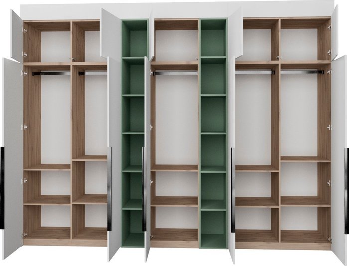 • ✅Ключевые характеристикиШкаф представляет собой готовую к установке модульную конструкцию с распашными дверцами и вместительным внутренним наполнением; включающим 10 полок и 5 штанг для одежды. Высота изделия регулируется с помощью доборных элементов в диапазоне от 2450 до 2740 мм; что позволяет адаптировать шкаф под разные помещения. Материалы корпуса и фасадов выполнены из ЛДСП класса Е0.5 с качественной кромкой ПВХ; обеспечивающей долговечность и безопасность.✅Преимущества и отличияМодель оснащена фурнитурой Blum и Hafele с доводчиками и механизмом TipOn для удобного открывания дверей без ручек. Регулируемые металлические опоры компенсируют неровности пола; а крепления защищают шкаф от опрокидывания; что повышает безопасность эксплуатации. Фасады выполнены до пола без видимого цоколя; что придаёт изделию современный и аккуратный внешний вид.✅ПрактичностьШкаф подходит для различных помещений: детской; спальни; прихожей; офиса и гардеробной; благодаря универсальному дизайну и функциональному наполнению. Угловое окончание стандартное; что облегчает размещение в нишах и углах. Направляющие скрытого монтажа с доводчиками обеспечивают плавное и бесшумное закрывание дверей. Поставка в разобранном виде упрощает транспортировку и сборку даже в ограниченном пространстве.✅УникальностьДвухстороннее исполнение шкафа позволяет использовать его с обеих сторон; что расширяет возможности размещения в интерьере. Использование сертифицированных материалов и фурнитуры премиум-класса гарантирует высокое качество и долговечность изделия. Регулируемая высота и продуманная конструкция делают шкаф универсальным решением для хранения одежды и других вещей в жилых и рабочих помещениях. ✅Ключевые характеристикиШкаф представляет собой готовую к установке модульную конструкцию с распашными дверцами и вместительным внутренним наполнением; включающим 10 полок и 5 штанг для одежды. Высота изделия регулируется с помощью доборных элементов в диапазоне от 2450 до 2740 мм; что позволяет адаптировать шкаф под разные помещения. Материалы корпуса и фасадов выполнены из ЛДСП класса Е0.5 с качественной кромкой ПВХ; обеспечивающей долговечность и безопасность.✅Преимущества и отличияМодель оснащена фурнитурой Blum и Hafele с доводчиками и механизмом TipOn для удобного открывания дверей без ручек. Регулируемые металлические опоры компенсируют неровности пола; а крепления защищают шкаф от опрокидывания; что повышает безопасность эксплуатации. Фасады выполнены до пола без видимого цоколя; что придаёт изделию современный и аккуратный внешний вид.✅ПрактичностьШкаф подходит для различных помещений: детской; спальни; прихожей; офиса и гардеробной; благодаря универсальному дизайну и функциональному наполнению. Угловое окончание стандартное; что облегчает размещение в нишах и углах. Направляющие скрытого монтажа с доводчиками обеспечивают плавное и бесшумное закрывание дверей. Поставка в разобранном виде упрощает транспортировку и сборку даже в ограниченном пространстве.✅УникальностьДвухстороннее исполнение шкафа позволяет использовать его с обеих сторон; что расширяет возможности размещения в интерьере. Использование сертифицированных материалов и фурнитуры премиум-класса гарантирует высокое качество и долговечность изделия. Регулируе
