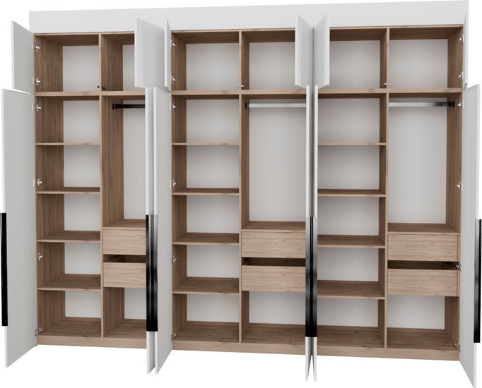 ✅Ключевые характеристикиШкаф распашной предназначен для хранения общего назначения и подходит для различных помещений: детской; жилой комнаты; столовой; прихожей; спальни и офиса. Его модульная конструкция из ЛДСП класса Е0,5 обеспечивает экологичность и долговечность. Размеры изделия составляют 327.2 на 60.6 на 274 см; что позволяет вместить большое количество вещей.✅Преимущества и отличияФурнитура Blum и Hafele с доводчиками и TipOn-механизмами гарантирует плавное и бесшумное закрывание дверей. Регулируемые металлические опоры компенсируют неровности пола; а крепления защищают шкаф от опрокидывания; обеспечивая безопасность и устойчивость. Фасады выполнены до пола без видимого цоколя; что придаёт изделию современный и аккуратный вид.✅ПрактичностьШкаф легко собирается даже в узких помещениях и может устанавливаться в нишу; угол или вдоль стены. Высота регулируется с помощью доборных элементов в диапазоне от 2450 до 2740 мм; что позволяет адаптировать мебель под индивидуальные параметры помещения. Наполнение включает ящики; полки и штангу; что обеспечивает удобное хранение различных предметов.✅УникальностьИсполнение двухстороннее; что расширяет возможности размещения в комнате. Направляющие скрытого монтажа с доводчиками повышают комфорт эксплуатации. Использование сертифицированных материалов и качественной фурнитуры делает шкаф надёжным и долговечным решением для дома и офиса.✅Ключевые характеристикиШкаф распашной предназначен для хранения общего назначения и подходит для различных помещений: детской; жилой комнаты; столовой; прихожей; спальни и офиса. Его модульная конструкция из ЛДСП класса Е0,5 обеспечивает экологичность и долговечность. Размеры изделия составляют 327.2 на 60.6 на 274 см; что позволяет вместить большое количество вещей.✅Преимущества и отличияФурнитура Blum и Hafele с доводчиками и TipOn-механизмами гарантирует плавное и бесшумное закрывание дверей. Регулируемые металлические опоры компенсируют неровности пола; а крепления защищают шкаф от опрокидывания; обеспечивая безопасность и устойчивость. Фасады выполнены до пола без видимого цоколя; что придаёт изделию современный и аккуратный вид.✅ПрактичностьШкаф легко собирается даже в узких помещениях и может устанавливаться в нишу; угол или вдоль стены. Высота регулируется с помощью доборных элементов в диапазоне от 2450 до 2740 мм; что позволяет адаптировать мебель под индивидуальные параметры помещения. Наполнение включает ящики; полки и штангу; что обеспечивает удобное хранение различных предметов.✅УникальностьИсполнение двухстороннее; что расширяет возможности размещения в комнате. Направляющие скрытого монтажа с доводчиками повышают комфорт эксплуатации. Использование сертифицированных материалов и качественной фурнитуры делает шкаф надёжным и долговечным решением для дома и офиса.