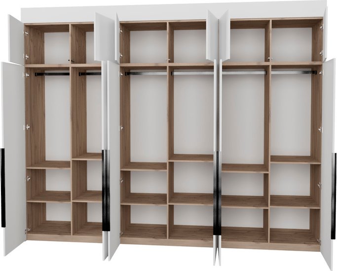✅Ключевые характеристикиШкаф распашной предназначен для хранения общего назначения и подходит для различных помещений: детской; жилой комнаты; столовой; прихожей; спальни и офиса. Его модульная конструкция из ЛДСП класса Е0,5 обеспечивает экологичность и долговечность. Размеры изделия составляют 327.2 на 60.6 на 274 см; что позволяет вместить большое количество вещей.✅Преимущества и отличияФурнитура Blum и Hafele с доводчиками и TipOn-механизмами обеспечивает плавное и бесшумное закрывание дверей. Регулируемые металлические опоры компенсируют неровности пола; а крепления защищают шкаф от опрокидывания; что повышает безопасность эксплуатации. Фасады выполнены до пола без видимого цоколя; что придаёт изделию современный и аккуратный вид.✅ПрактичностьШкаф легко собирается даже в узких помещениях и может устанавливаться в нишу; угол или вдоль стены. Высота регулируется с помощью доборных элементов в диапазоне от 2450 до 2740 мм; что позволяет адаптировать шкаф под разные потолки. Наполнение включает полки и штангу для удобного размещения одежды и других предметов.✅УникальностьИсполнение двухстороннее; что расширяет возможности размещения в помещении. Направляющие скрытого монтажа с доводчиками повышают комфорт использования. Использование сертифицированных материалов и качественной фурнитуры гарантирует надёжность и долговечность конструкции.✅Ключевые характеристикиШкаф распашной предназначен для хранения общего назначения и подходит для различных помещений: детской; жилой комнаты; столовой; прихожей; спальни и офиса. Его модульная конструкция из ЛДСП класса Е0,5 обеспечивает экологичность и долговечность. Размеры изделия составляют 327.2 на 60.6 на 274 см; что позволяет вместить большое количество вещей.✅Преимущества и отличияФурнитура Blum и Hafele с доводчиками и TipOn-механизмами обеспечивает плавное и бесшумное закрывание дверей. Регулируемые металлические опоры компенсируют неровности пола; а крепления защищают шкаф от опрокидывания; что повышает безопасность эксплуатации. Фасады выполнены до пола без видимого цоколя; что придаёт изделию современный и аккуратный вид.✅ПрактичностьШкаф легко собирается даже в узких помещениях и может устанавливаться в нишу; угол или вдоль стены. Высота регулируется с помощью доборных элементов в диапазоне от 2450 до 2740 мм; что позволяет адаптировать шкаф под разные потолки. Наполнение включает полки и штангу для удобного размещения одежды и других предметов.✅УникальностьИсполнение двухстороннее; что расширяет возможности размещения в помещении. Направляющие скрытого монтажа с доводчиками повышают комфорт использования. Использование сертифицированных материалов и качественной фурнитуры гарантирует надёжность и долговечность конструкции.