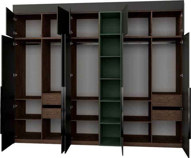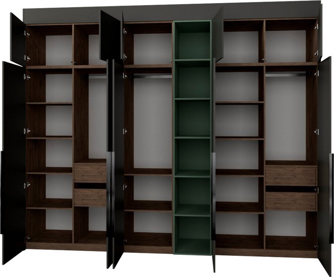 ✅Ключевые характеристикиШкаф распашной предназначен для хранения общего назначения и подходит для различных помещений: детской; жилой комнаты; столовой; прихожей; спальни и офиса. Модель имеет модульную конструкцию из ЛДСП с фасадами до пола и регулируемую высоту от 2450 до 2740 мм. Общие габариты составляют 313.2 см в ширину; а крепления защищают шкаф от опрокидывания; что повышает безопасность и устойчивость конструкции.✅ПрактичностьВнутреннее наполнение включает ящики; полки и штангу; что позволяет удобно организовать хранение одежды и других вещей. Фасады выполнены из ЛДСП класса Е0.5 с ПВХ кромкой; что гарантирует экологичность и долговечность. Шкаф поставляется в разобранном виде; что облегчает транспортировку и сборку даже в узких помещениях.✅УникальностьДвухстороннее исполнение и фасады без видимого цоколя создают современный и аккуратный внешний вид. Регулируемая высота с помощью доборных элементов позволяет адаптировать шкаф под индивидуальные параметры помещения. Сертифицированное качество и использование современных материалов делают изделие надежным и функциональным решением для дома и офиса.✅Ключевые характеристикиШкаф распашной предназначен для хранения общего назначения и подходит для различных помещений: детской; жилой комнаты; столовой; прихожей; спальни и офиса. Модель имеет модульную конструкцию из ЛДСП с фасадами до пола и регулируемую высоту от 2450 до 2740 мм. Общие габариты составляют 313.2 см в ширину; а крепления защищают шкаф от опрокидывания; что повышает безопасность и устойчивость конструкции.✅ПрактичностьВнутреннее наполнение включает ящики; полки и штангу; что позволяет удобно организовать хранение одежды и других вещей. Фасады выполнены из ЛДСП класса Е0.5 с ПВХ кромкой; что гарантирует экологичность и долговечность. Шкаф поставляется в разобранном виде; что облегчает транспортировку и сборку даже в узких помещениях.✅УникальностьДвухстороннее исполнение и фасады без видимого цоколя создают современный и аккуратный внешний вид. Регулируемая высота с помощью доборных элементов позволяет адаптировать шкаф под индивидуальные параметры помещения. Сертифицированное качество и использование современных материалов делают изделие надежным и функциональным решением для дома и офиса.