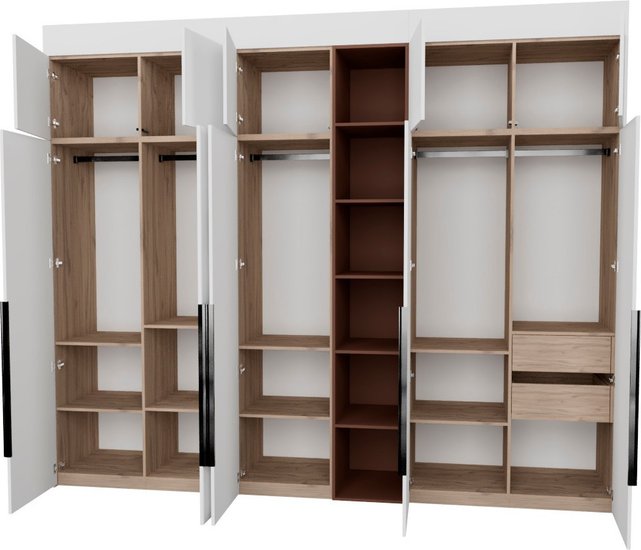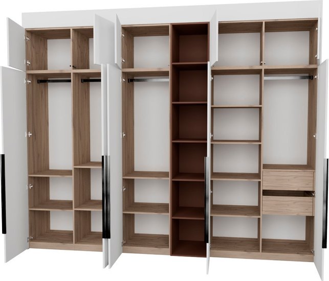 ✅Ключевые характеристикиШкаф распашной предназначен для хранения одежды; книг и предметов общего назначения в различных помещениях: детской; жилой комнате; столовой; прихожей; спальне; офисе и гардеробной. Его модульная конструкция из ЛДСП класса Е0.5 обеспечивает экологичность и долговечность. Размеры изделия составляют 313.2 см в ширину; что позволяет эффективно использовать пространство.✅Преимущества и отличияМодель оснащена фурнитурой Blum и Hafele с доводчиками и TipOn-механизмами для комфортного и бесшумного открывания дверей. Регулируемые металлические опоры компенсируют неровности пола; а крепления защищают шкаф от опрокидывания; что повышает безопасность эксплуатации. Фасады выполнены до пола без видимого цоколя; что придаёт изделию современный и аккуратный вид.✅ПрактичностьШкаф легко собирается даже в узких помещениях и подходит для установки в нишу; угол или вдоль стены. Внутреннее наполнение включает 2 ящика; а также 5 открытых полок; что обеспечивает удобное размещение различных вещей. Высота регулируется с помощью доборных элементов в диапазоне от 2450 до 2740 мм; что позволяет адаптировать шкаф под индивидуальные требования помещения.✅УникальностьДвухстороннее исполнение и скрытые направляющие с доводчиками обеспечивают эстетичный внешний вид и удобство использования. Использование ЛДСП с ПВХ кромкой и качественной фурнитуры гарантирует долговечность и надёжность конструкции. Модель поставляется в разобранном виде; что облегчает транспортировку и монтаж.✅Ключевые характеристикиШкаф распашной предназначен для хранения одежды; книг и предметов общего назначения в различных помещениях: детской; жилой комнате; столовой; прихожей; спальне; офисе и гардеробной. Его модульная конструкция из ЛДСП класса Е0.5 обеспечивает экологичность и долговечность. Размеры изделия составляют 313.2 см в ширину; что позволяет эффективно использовать пространство.✅Преимущества и отличияМодель оснащена фурнитурой Blum и Hafele с доводчиками и TipOn-механизмами для комфортного и бесшумного открывания дверей. Регулируемые металлические опоры компенсируют неровности пола; а крепления защищают шкаф от опрокидывания; что повышает безопасность эксплуатации. Фасады выполнены до пола без видимого цоколя; что придаёт изделию современный и аккуратный вид.✅ПрактичностьШкаф легко собирается даже в узких помещениях и подходит для установки в нишу; угол или вдоль стены. Внутреннее наполнение включает 2 ящика; а также 5 открытых полок; что обеспечивает удобное размещение различных вещей. Высота регулируется с помощью доборных элементов в диапазоне от 2450 до 2740 мм; что позволяет адаптировать шкаф под индивидуальные требования помещения.✅УникальностьДвухстороннее исполнение и скрытые направляющие с доводчиками обеспечивают эстетичный внешний вид и удобство использования. Использование ЛДСП с ПВХ кромкой и качественной фурнитуры гарантирует долговечность и надёжность конструкции. Модель поставляется в разобранном виде; что облегчает транспортировку и монтаж.