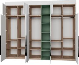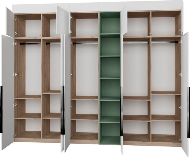 ✅Ключевые характеристикиШкаф распашной предназначен для хранения одежды и предметов общего назначения в различных помещениях: детской; жилой комнате; столовой; прихожей; спальне; офисе и гардеробной. Его модульная конструкция из ЛДСП класса Е0.5 обеспечивает экологичность и долговечность. Размеры изделия составляют 313.2 на 60.6 на 274 см; что позволяет вместить большое количество вещей.✅Преимущества и отличияМодель оснащена фурнитурой Blum и Hafele с доводчиками и TipOn-механизмами для удобного и бесшумного открывания дверей. Регулируемые металлические опоры компенсируют неровности пола; а крепления защищают от опрокидывания; что повышает безопасность и устойчивость конструкции. Фасады выполнены до пола без видимого цоколя; что придаёт шкафу современный и аккуратный вид.✅ПрактичностьШкаф легко собирается даже в узких помещениях и подходит для установки в нишу; угол или вдоль стены. Внутреннее наполнение включает 10 полок и 5 штанг для одежды; а также 5 открытых полок для удобного доступа к часто используемым предметам. Направляющие скрытого монтажа с доводчиками обеспечивают плавное закрывание дверей; а наличие антресоли увеличивает полезное пространство для хранения.✅УникальностьВысота изделия регулируется с помощью доборных элементов в диапазоне от 2450 до 2740 мм; что позволяет адаптировать шкаф под разные потолки и интерьерные решения. Использование ЛДСП с ПВХ кромкой и качественной фурнитуры гарантирует долговечность и надёжность конструкции. Двухстороннее исполнение фасадов расширяет возможности размещения в помещении.✅Ключевые характеристикиШкаф распашной предназначен для хранения одежды и предметов общего назначения в различных помещениях: детской; жилой комнате; столовой; прихожей; спальне; офисе и гардеробной. Его модульная конструкция из ЛДСП класса Е0.5 обеспечивает экологичность и долговечность. Размеры изделия составляют 313.2 на 60.6 на 274 см; что позволяет вместить большое количество вещей.✅Преимущества и отличияМодель оснащена фурнитурой Blum и Hafele с доводчиками и TipOn-механизмами для удобного и бесшумного открывания дверей. Регулируемые металлические опоры компенсируют неровности пола; а крепления защищают от опрокидывания; что повышает безопасность и устойчивость конструкции. Фасады выполнены до пола без видимого цоколя; что придаёт шкафу современный и аккуратный вид.✅ПрактичностьШкаф легко собирается даже в узких помещениях и подходит для установки в нишу; угол или вдоль стены. Внутреннее наполнение включает 10 полок и 5 штанг для одежды; а также 5 открытых полок для удобного доступа к часто используемым предметам. Направляющие скрытого монтажа с доводчиками обеспечивают плавное закрывание дверей; а наличие антресоли увеличивает полезное пространство для хранения.✅УникальностьВысота изделия регулируется с помощью доборных элементов в диапазоне от 2450 до 2740 мм; что позволяет адаптировать шкаф под разные потолки и интерьерные решения. Использование ЛДСП с ПВХ кромкой и качественной фурнитуры гарантирует долговечность и надёжность конструкции. Двухстороннее исполнение фасадов расширяет возможности размещения в помещении.