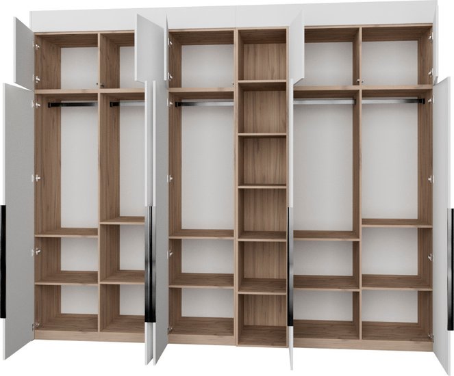 ✅Ключевые характеристикиШкаф представляет собой готовую к установке модульную конструкцию с распашными дверцами; предназначенную для хранения общего назначения в различных помещениях: детской; жилой комнате; столовой; прихожей; спальне и офисе. Его размеры составляют 313.2 см в ширину; что обеспечивает вместительность и удобство использования. Материалы корпуса и фасада выполнены из ЛДСП класса Е0,5 с качественной ПВХ кромкой; что гарантирует долговечность и экологичность.✅Преимущества и отличияМодель оснащена фурнитурой Blum и Hafele с доводчиками и TipOn-механизмами; обеспечивающими плавное и бесшумное закрывание дверей. Регулируемые металлические опоры компенсируют неровности пола; а крепления защищают шкаф от опрокидывания; что повышает безопасность эксплуатации. Фасады выполнены до пола без видимого цоколя; что придаёт изделию современный и аккуратный внешний вид.✅ПрактичностьШкаф легко собирается даже в узких помещениях и подходит для установки в нишу; угол или вдоль стены. Высота регулируется с помощью доборных элементов в диапазоне от 2450 до 2740 мм; что позволяет адаптировать мебель под индивидуальные параметры помещения. Наполнение включает полки и штангу для удобного размещения одежды и других предметов.✅УникальностьДвухстороннее исполнение шкафа расширяет возможности его размещения в интерьере. Использование сертифицированных материалов и фурнитуры высокого качества обеспечивает надёжность и долговечность конструкции. Скрытые направляющие с доводчиками и отсутствие мебельного замка подчёркивают современный дизайн и удобство эксплуатации.✅Ключевые характеристикиШкаф представляет собой готовую к установке модульную конструкцию с распашными дверцами; предназначенную для хранения общего назначения в различных помещениях: детской; жилой комнате; столовой; прихожей; спальне и офисе. Его размеры составляют 313.2 см в ширину; что обеспечивает вместительность и удобство использования. Материалы корпуса и фасада выполнены из ЛДСП класса Е0,5 с качественной ПВХ кромкой; что гарантирует долговечность и экологичность.✅Преимущества и отличияМодель оснащена фурнитурой Blum и Hafele с доводчиками и TipOn-механизмами; обеспечивающими плавное и бесшумное закрывание дверей. Регулируемые металлические опоры компенсируют неровности пола; а крепления защищают шкаф от опрокидывания; что повышает безопасность эксплуатации. Фасады выполнены до пола без видимого цоколя; что придаёт изделию современный и аккуратный внешний вид.✅ПрактичностьШкаф легко собирается даже в узких помещениях и подходит для установки в нишу; угол или вдоль стены. Высота регулируется с помощью доборных элементов в диапазоне от 2450 до 2740 мм; что позволяет адаптировать мебель под индивидуальные параметры помещения. Наполнение включает полки и штангу для удобного размещения одежды и других предметов.✅УникальностьДвухстороннее исполнение шкафа расширяет возможности его размещения в интерьере. Использование сертифицированных материалов и фурнитуры высокого качества обеспечивает надёжность и долговечность конструкции. Скрытые направляющие с доводчиками и отсутствие мебельного замка подчёркивают современный дизайн и удобство эксплуатации.