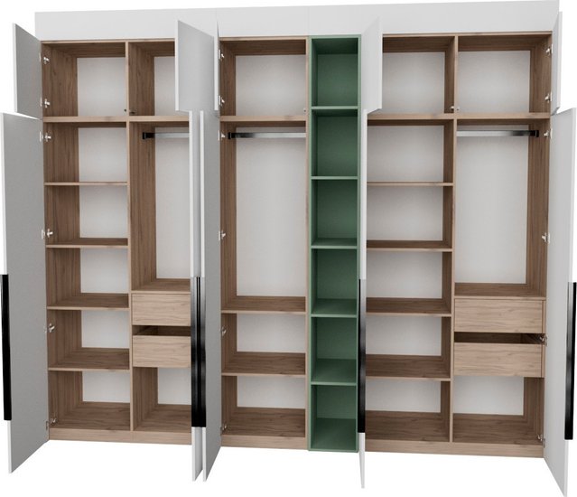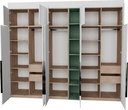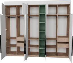 ✅Ключевые характеристикиШкаф распашной с модульной конструкцией предназначен для хранения одежды и предметов общего назначения в различных помещениях: детской; жилой комнате; столовой; прихожей; спальне; офисе и гардеробной. Высота регулируется в диапазоне от 2450 до 2740 мм с помощью доборных элементов; что позволяет адаптировать мебель под разные потолки и ниши. Общие габариты составляют 303.2 см в ширину; а каркас из ЛДСП дуб элисон; что обеспечивает прочность и эстетичный внешний вид. Использование фурнитуры Blum и Hafele с доводчиками и TipOn-механизмами гарантирует плавное и бесшумное закрывание дверей. Металлические регулируемые опоры компенсируют неровности пола; а крепления защищают шкаф от опрокидывания; повышая безопасность эксплуатации.✅ПрактичностьВнутреннее наполнение включает 4 ящика; что обеспечивает удобное и функциональное хранение. Наличие открытых полок позволяет разместить часто используемые предметы или декоративные элементы. Шкаф поставляется в разобранном виде; что облегчает транспортировку и сборку даже в узких помещениях. Направляющие скрытого монтажа с доводчиками повышают комфорт использования.✅УникальностьДвухстороннее исполнение фасадов позволяет устанавливать шкаф в нишу; угол или вдоль стены; что расширяет возможности размещения в интерьере. Отсутствие видимого цоколя и фасады до пола создают современный и аккуратный внешний вид. Сертифицированное качество ЛДСП по стандартам ЕАЭС подтверждает экологичность и безопасность материала.✅Ключевые характеристикиШкаф распашной с модульной конструкцией предназначен для хранения одежды и предметов общего назначения в различных помещениях: детской; жилой комнате; столовой; прихожей; спальне; офисе и гардеробной. Высота регулируется в диапазоне от 2450 до 2740 мм с помощью доборных элементов; что позволяет адаптировать мебель под разные потолки и ниши. Общие габариты составляют 303.2 см в ширину; а каркас из ЛДСП дуб элисон; что обеспечивает прочность и эстетичный внешний вид. Использование фурнитуры Blum и Hafele с доводчиками и TipOn-механизмами гарантирует плавное и бесшумное закрывание дверей. Металлические регулируемые опоры компенсируют неровности пола; а крепления защищают шкаф от опрокидывания; повышая безопасность эксплуатации.✅ПрактичностьВнутреннее наполнение включает 4 ящика; что обеспечивает удобное и функциональное хранение. Наличие открытых полок позволяет разместить часто используемые предметы или декоративные элементы. Шкаф поставляется в разобранном виде; что облегчает транспортировку и сборку даже в узких помещениях. Направляющие скрытого монтажа с доводчиками повышают комфорт использования.✅УникальностьДвухстороннее исполнение фасадов позволяет устанавливать шкаф в нишу; угол или вдоль стены; что расширяет возможности размещения в интерьере. Отсутствие видимого цоколя и фасады до пола создают современный и аккуратный внешний вид. Сертифицированное качество ЛДСП по стандартам ЕАЭС подтверждает экологичность и безопасность материала.