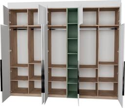 ✅Ключевые характеристикиШкаф распашной предназначен для хранения одежды и предметов общего назначения в различных помещениях: детской; жилой комнате; столовой; прихожей; спальне; офисе и гардеробной. Изготовлен из ЛДСП класса Е0.5 с сертифицированным качеством ЕАЭС. Размеры изделия составляют 303.2 см в ширину; что обеспечивает вместительность и удобство использования.✅Преимущества и отличияМодель оснащена фурнитурой Blum и Hafele с доводчиками и TipOn-механизмами для бесшумного и удобного открывания дверей. Регулируемые металлические опоры компенсируют неровности пола; а крепления защищают шкаф от опрокидывания; что повышает безопасность и устойчивость конструкции. Фасады выполнены до пола без видимого цоколя; что придаёт изделию современный и аккуратный внешний вид.✅ПрактичностьШкаф имеет модульную конструкцию; поставляется в разобранном виде и легко собирается даже в узких помещениях. Высота регулируется с помощью доборных элементов в диапазоне от 2450 до 2740 мм; что позволяет адаптировать шкаф под разные потолки и ниши. Внутреннее наполнение включает 10 полок и 5 штанг для одежды; а также 5 открытых полок для удобного хранения и демонстрации предметов.✅УникальностьДвухстороннее исполнение шкафа расширяет возможности размещения в комнате. Использование качественных материалов и современных механизмов с доводчиками и TipOn обеспечивает долговечность и комфорт эксплуатации. Скрытые направляющие с доводчиками и отсутствие видимого цоколя делают конструкцию эстетичной и функциональной; выделяя её среди типичных решений.✅Ключевые характеристикиШкаф распашной предназначен для хранения одежды и предметов общего назначения в различных помещениях: детской; жилой комнате; столовой; прихожей; спальне; офисе и гардеробной. Изготовлен из ЛДСП класса Е0.5 с сертифицированным качеством ЕАЭС. Размеры изделия составляют 303.2 см в ширину; что обеспечивает вместительность и удобство использования.✅Преимущества и отличияМодель оснащена фурнитурой Blum и Hafele с доводчиками и TipOn-механизмами для бесшумного и удобного открывания дверей. Регулируемые металлические опоры компенсируют неровности пола; а крепления защищают шкаф от опрокидывания; что повышает безопасность и устойчивость конструкции. Фасады выполнены до пола без видимого цоколя; что придаёт изделию современный и аккуратный внешний вид.✅ПрактичностьШкаф имеет модульную конструкцию; поставляется в разобранном виде и легко собирается даже в узких помещениях. Высота регулируется с помощью доборных элементов в диапазоне от 2450 до 2740 мм; что позволяет адаптировать шкаф под разные потолки и ниши. Внутреннее наполнение включает 10 полок и 5 штанг для одежды; а также 5 открытых полок для удобного хранения и демонстрации предметов.✅УникальностьДвухстороннее исполнение шкафа расширяет возможности размещения в комнате. Использование качественных материалов и современных механизмов с доводчиками и TipOn обеспечивает долговечность и комфорт эксплуатации. Скрытые направляющие с доводчиками и отсутствие видимого цоколя делают конструкцию эстетичной и функциональной; выделяя её среди типичных решений.