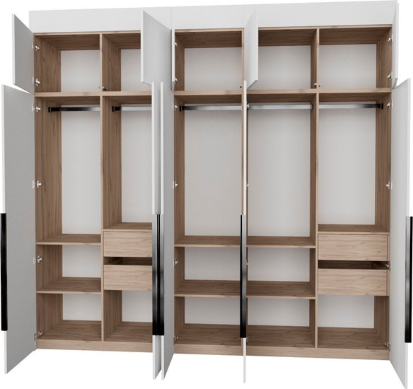 ✅Ключевые характеристикиШкаф представляет собой готовую к установке модульную конструкцию с распашными дверцами; предназначенную для хранения общего назначения в различных помещениях: детской; жилой комнате; столовой; прихожей; спальне и офисе. Его размеры составляют 273.2 в ширину; что позволяет эффективно использовать пространство. Материал корпуса и фасада выполнен из ЛДСП класса Е0,5 с ПВХ кромкой; обеспечивающим долговечность и экологичность.✅Преимущества и отличияМодель оснащена фурнитурой Blum и Hafele с доводчиками и TipOn-механизмами; что гарантирует плавное и бесшумное закрывание дверей. Регулируемые металлические опоры компенсируют неровности пола; а крепления защищают шкаф от опрокидывания; повышая безопасность эксплуатации. Фасады выполнены до пола без видимого цоколя; что придаёт изделию современный и аккуратный внешний вид.✅ПрактичностьВнутреннее наполнение включает ящики; полки и штангу; что обеспечивает удобное хранение различных вещей. Шкаф легко собирается даже в узких помещениях; а высота регулируется с помощью доборных элементов в диапазоне от 2450 до 2740 миллиметров; что позволяет адаптировать мебель под индивидуальные требования помещения. Направляющие скрытого монтажа с доводчиками обеспечивают комфорт в использовании.✅УникальностьДвухстороннее исполнение шкафа расширяет возможности его размещения в интерьере; а использование сертифицированных материалов и качественной фурнитуры повышает надёжность и срок службы изделия. Модульная конструкция позволяет быстро и без ожидания изготовления получить функциональную мебель; готовую к установке и эксплуатации.✅Ключевые характеристикиШкаф представляет собой готовую к установке модульную конструкцию с распашными дверцами; предназначенную для хранения общего назначения в различных помещениях: детской; жилой комнате; столовой; прихожей; спальне и офисе. Его размеры составляют 273.2 в ширину; что позволяет эффективно использовать пространство. Материал корпуса и фасада выполнен из ЛДСП класса Е0,5 с ПВХ кромкой; обеспечивающим долговечность и экологичность.✅Преимущества и отличияМодель оснащена фурнитурой Blum и Hafele с доводчиками и TipOn-механизмами; что гарантирует плавное и бесшумное закрывание дверей. Регулируемые металлические опоры компенсируют неровности пола; а крепления защищают шкаф от опрокидывания; повышая безопасность эксплуатации. Фасады выполнены до пола без видимого цоколя; что придаёт изделию современный и аккуратный внешний вид.✅ПрактичностьВнутреннее наполнение включает ящики; полки и штангу; что обеспечивает удобное хранение различных вещей. Шкаф легко собирается даже в узких помещениях; а высота регулируется с помощью доборных элементов в диапазоне от 2450 до 2740 миллиметров; что позволяет адаптировать мебель под индивидуальные требования помещения. Направляющие скрытого монтажа с доводчиками обеспечивают комфорт в использовании.✅УникальностьДвухстороннее исполнение шкафа расширяет возможности его размещения в интерьере; а использование сертифицированных материалов и качественной фурнитуры повышает надёжность и срок службы изделия. Модульная конструкция позволяет быстро и без ожидания изготовления получить функциональную мебель; готовую к установке и эксплуатации.