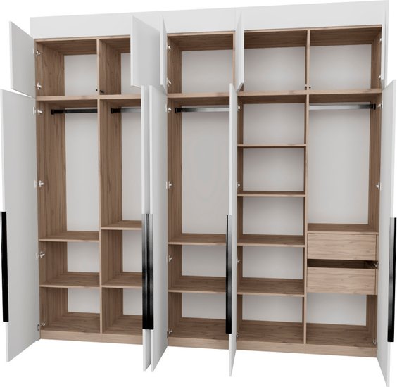 ✅Ключевые характеристикиШкаф представляет собой готовую к установке модульную конструкцию с распашными дверцами; предназначенную для хранения общего назначения в различных помещениях: детской; жилой комнате; столовой; прихожей; спальне и офисе. Его размеры составляют 273.2 см в ширину; что позволяет эффективно использовать пространство. Высота регулируется с помощью доборных элементов в диапазоне от 2450 мм до 2740 мм; что обеспечивает гибкость под разные потолки.✅Преимущества и отличияМодель оснащена качественной фурнитурой Blum и Hafele с доводчиками и TipOn-механизмами; обеспечивающими плавное и бесшумное закрывание дверей. Металлические регулируемые опоры компенсируют неровности пола; а крепления защищают шкаф от опрокидывания; что повышает безопасность эксплуатации. Фасады выполнены из ЛДСП класса Е0,5 с сертифицированным качеством ЕАЭС; что гарантирует экологичность и долговечность.✅ПрактичностьВнутреннее наполнение включает ящики; полки и штангу; что позволяет удобно организовать хранение различных вещей. Направляющие скрытого монтажа с доводчиками обеспечивают комфорт при использовании. Шкаф поставляется в разобранном виде; что облегчает транспортировку и сборку даже в узких помещениях. Отсутствие видимого цоколя и фасады до пола создают современный и аккуратный внешний вид.✅УникальностьДвухстороннее исполнение шкафа позволяет использовать его в нишах; углах или вдоль стены; что расширяет возможности размещения. Использование высококачественных материалов и фурнитуры с инновационными механизмами TipOn выделяет эту модель среди типичных решений; обеспечивая удобство и надежность в повседневном использовании.✅Ключевые характеристикиШкаф представляет собой готовую к установке модульную конструкцию с распашными дверцами; предназначенную для хранения общего назначения в различных помещениях: детской; жилой комнате; столовой; прихожей; спальне и офисе. Его размеры составляют 273.2 см в ширину; что позволяет эффективно использовать пространство. Высота регулируется с помощью доборных элементов в диапазоне от 2450 мм до 2740 мм; что обеспечивает гибкость под разные потолки.✅Преимущества и отличияМодель оснащена качественной фурнитурой Blum и Hafele с доводчиками и TipOn-механизмами; обеспечивающими плавное и бесшумное закрывание дверей. Металлические регулируемые опоры компенсируют неровности пола; а крепления защищают шкаф от опрокидывания; что повышает безопасность эксплуатации. Фасады выполнены из ЛДСП класса Е0,5 с сертифицированным качеством ЕАЭС; что гарантирует экологичность и долговечность.✅ПрактичностьВнутреннее наполнение включает ящики; полки и штангу; что позволяет удобно организовать хранение различных вещей. Направляющие скрытого монтажа с доводчиками обеспечивают комфорт при использовании. Шкаф поставляется в разобранном виде; что облегчает транспортировку и сборку даже в узких помещениях. Отсутствие видимого цоколя и фасады до пола создают современный и аккуратный внешний вид.✅УникальностьДвухстороннее исполнение шкафа позволяет использовать его в нишах; углах или вдоль стены; что расширяет возможности размещения. Использование высококачественных материалов и фурнитуры с инновационными механизмами TipOn выделяет эту модель среди типичных решений; обеспечивая удобство и надежность 