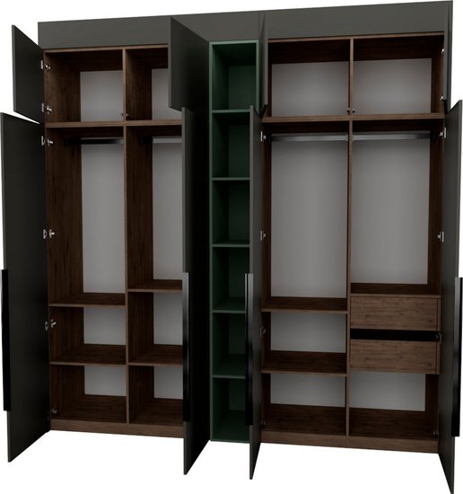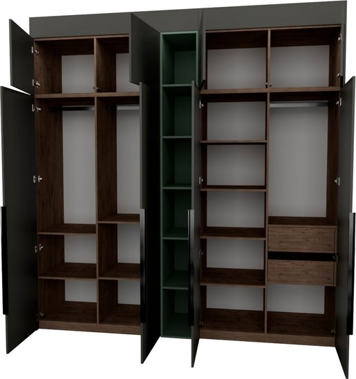 ✅Ключевые характеристикиШкаф распашной с модульной конструкцией предназначен для хранения общего назначения в различных помещениях: детской; жилой комнате; столовой; прихожей; спальне и офисе. Размеры изделия составляют 249.2 на 60.6 на 274 см; что позволяет эффективно использовать пространство. Материалы корпуса и фасада выполнены из ЛДСП с кромкой из ПВХ; обеспечивая прочность и долговечность. Вес изделия составляет 378.64 кг.✅Преимущества и отличияМодель оснащена фурнитурой Blum и Hafele с доводчиками и механизмами Tip-On; что обеспечивает плавное и бесшумное открывание дверей и ящиков. Регулируемые металлические опоры компенсируют неровности пола; а крепления защищают шкаф от опрокидывания; повышая безопасность эксплуатации. Фасады выполнены до пола без видимого цоколя; что придаёт изделию современный и аккуратный внешний вид.✅ПрактичностьШкаф легко собирается даже в узких помещениях и подходит для установки в нишу; угол или вдоль стены. Высота регулируется с помощью доборных элементов в диапазоне от 2450 до 2740 мм; что позволяет адаптировать шкаф под разные потолочные высоты. Внутреннее наполнение включает ящики; полки и штангу; а направляющие скрытого монтажа с доводчиками обеспечивают удобство и долговечность использования.✅УникальностьИспользование ЛДСП класса Е0.5 с сертифицированным качеством ЕАЭС гарантирует экологическую безопасность и высокие стандарты производства. Двухстороннее исполнение шкафа расширяет возможности размещения в интерьере. Особое внимание уделено деталям: фурнитура с доводчиками и механизмами Tip-On; а также отсутствие видимого цоколя создают гармоничный и современный дизайн.✅Ключевые характеристикиШкаф распашной с модульной конструкцией предназначен для хранения общего назначения в различных помещениях: детской; жилой комнате; столовой; прихожей; спальне и офисе. Размеры изделия составляют 249.2 на 60.6 на 274 см; что позволяет эффективно использовать пространство. Материалы корпуса и фасада выполнены из ЛДСП с кромкой из ПВХ; обеспечивая прочность и долговечность. Вес изделия составляет 378.64 кг.✅Преимущества и отличияМодель оснащена фурнитурой Blum и Hafele с доводчиками и механизмами Tip-On; что обеспечивает плавное и бесшумное открывание дверей и ящиков. Регулируемые металлические опоры компенсируют неровности пола; а крепления защищают шкаф от опрокидывания; повышая безопасность эксплуатации. Фасады выполнены до пола без видимого цоколя; что придаёт изделию современный и аккуратный внешний вид.✅ПрактичностьШкаф легко собирается даже в узких помещениях и подходит для установки в нишу; угол или вдоль стены. Высота регулируется с помощью доборных элементов в диапазоне от 2450 до 2740 мм; что позволяет адаптировать шкаф под разные потолочные высоты. Внутреннее наполнение включает ящики; полки и штангу; а направляющие скрытого монтажа с доводчиками обеспечивают удобство и долговечность использования.✅УникальностьИспользование ЛДСП класса Е0.5 с сертифицированным качеством ЕАЭС гарантирует экологическую безопасность и высокие стандарты производства. Двухстороннее исполнение шкафа расширяет возможности размещения в интерьере. Особое внимание уделено деталям: фурнитура с доводчиками и механизмами Tip-On; а также отсутствие видимого цоколя создают гармоничный и современный дизайн.