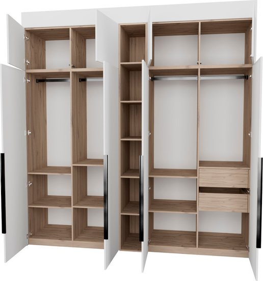 ✅Ключевые характеристикиШкаф представляет собой готовую к установке модульную конструкцию с распашными дверцами; предназначенную для хранения общего назначения в различных помещениях: детской; жилой комнате; столовой; прихожей; спальне и офисе. Его размеры составляют 249.2 см в ширину; что позволяет эффективно использовать пространство. Материалы корпуса и фасада выполнены из ЛДСП класса Е0,5 с качественной ПВХ кромкой; обеспечивающей долговечность и экологичность.✅Преимущества и отличияМодель оснащена фурнитурой Blum и Hafele с доводчиками и TipOn-механизмами; что гарантирует плавное и бесшумное закрывание дверей. Регулируемые металлические опоры компенсируют неровности пола; а крепления защищают шкаф от опрокидывания; повышая безопасность эксплуатации. Фасады выполнены до пола без видимого цоколя; что придаёт изделию современный и аккуратный внешний вид.✅ПрактичностьВнутреннее наполнение включает ящики; полки и штангу; что обеспечивает удобное хранение различных вещей. Направляющие скрытого монтажа с доводчиками повышают комфорт использования. Высота шкафа регулируется с помощью доборных элементов в диапазоне от 2450 до 2740 мм; что позволяет адаптировать мебель под индивидуальные требования помещения. Форма поставки - в разобранном виде; что облегчает транспортировку и сборку даже в узких пространствах.✅УникальностьДвухстороннее исполнение шкафа расширяет возможности его размещения в комнате. Использование сертифицированных материалов и фурнитуры премиум-класса обеспечивает высокое качество и долговечность изделия. Регулируемые металлические опоры и защита от опрокидывания делают конструкцию максимально устойчивой и безопасной; что выделяет этот шкаф среди аналогичных решений.✅Ключевые характеристикиШкаф представляет собой готовую к установке модульную конструкцию с распашными дверцами; предназначенную для хранения общего назначения в различных помещениях: детской; жилой комнате; столовой; прихожей; спальне и офисе. Его размеры составляют 249.2 см в ширину; что позволяет эффективно использовать пространство. Материалы корпуса и фасада выполнены из ЛДСП класса Е0,5 с качественной ПВХ кромкой; обеспечивающей долговечность и экологичность.✅Преимущества и отличияМодель оснащена фурнитурой Blum и Hafele с доводчиками и TipOn-механизмами; что гарантирует плавное и бесшумное закрывание дверей. Регулируемые металлические опоры компенсируют неровности пола; а крепления защищают шкаф от опрокидывания; повышая безопасность эксплуатации. Фасады выполнены до пола без видимого цоколя; что придаёт изделию современный и аккуратный внешний вид.✅ПрактичностьВнутреннее наполнение включает ящики; полки и штангу; что обеспечивает удобное хранение различных вещей. Направляющие скрытого монтажа с доводчиками повышают комфорт использования. Высота шкафа регулируется с помощью доборных элементов в диапазоне от 2450 до 2740 мм; что позволяет адаптировать мебель под индивидуальные требования помещения. Форма поставки - в разобранном виде; что облегчает транспортировку и сборку даже в узких пространствах.✅УникальностьДвухстороннее исполнение шкафа расширяет возможности его размещения в комнате. Использование сертифицированных материалов и фурнитуры премиум-класса обеспечивает высокое качество и долговечность издели