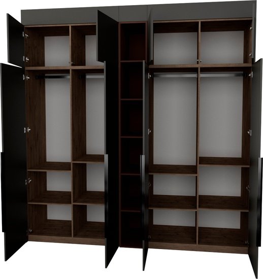 ✅Ключевые характеристикиШкаф распашной предназначен для хранения одежды и предметов общего назначения в различных помещениях: детской; жилой комнате; столовой; прихожей; спальне; офисе и гардеробной. Его модульная конструкция из ЛДСП класса Е0.5 обеспечивает экологичность и долговечность. Размеры изделия составляют 249.2 см в ширину; что позволяет вместить большое количество вещей.✅Преимущества и отличияМодель оснащена фурнитурой Blum и Hafele с доводчиками и механизмом TipOn для удобного открывания дверей без усилий. Регулируемые металлические опоры компенсируют неровности пола; а крепления защищают шкаф от опрокидывания; что повышает безопасность эксплуатации. Фасады выполнены до пола без видимого цоколя; что придаёт изделию современный и аккуратный вид.✅ПрактичностьВнутреннее наполнение включает 8 полок и 4 штанги для одежды; а также 5 открытых полок для быстрого доступа к часто используемым предметам. Направляющие скрытого монтажа с доводчиками обеспечивают плавное и бесшумное закрывание дверей. Высота шкафа регулируется с помощью доборных элементов в диапазоне от 2450 до 2740 мм; что позволяет адаптировать его под разные потолки и ниши.✅УникальностьДвухстороннее исполнение шкафа расширяет возможности его размещения в помещении. Использование сертифицированных материалов и качественной фурнитуры гарантирует надёжность и долговечность конструкции. Модель легко собирается даже в узких пространствах; что делает её удобной для самостоятельной установки без длительного ожидания изготовления.✅Ключевые характеристикиШкаф распашной предназначен для хранения одежды и предметов общего назначения в различных помещениях: детской; жилой комнате; столовой; прихожей; спальне; офисе и гардеробной. Его модульная конструкция из ЛДСП класса Е0.5 обеспечивает экологичность и долговечность. Размеры изделия составляют 249.2 см в ширину; что позволяет вместить большое количество вещей.✅Преимущества и отличияМодель оснащена фурнитурой Blum и Hafele с доводчиками и механизмом TipOn для удобного открывания дверей без усилий. Регулируемые металлические опоры компенсируют неровности пола; а крепления защищают шкаф от опрокидывания; что повышает безопасность эксплуатации. Фасады выполнены до пола без видимого цоколя; что придаёт изделию современный и аккуратный вид.✅ПрактичностьВнутреннее наполнение включает 8 полок и 4 штанги для одежды; а также 5 открытых полок для быстрого доступа к часто используемым предметам. Направляющие скрытого монтажа с доводчиками обеспечивают плавное и бесшумное закрывание дверей. Высота шкафа регулируется с помощью доборных элементов в диапазоне от 2450 до 2740 мм; что позволяет адаптировать его под разные потолки и ниши.✅УникальностьДвухстороннее исполнение шкафа расширяет возможности его размещения в помещении. Использование сертифицированных материалов и качественной фурнитуры гарантирует надёжность и долговечность конструкции. Модель легко собирается даже в узких пространствах; что делает её удобной для самостоятельной установки без длительного ожидания изготовления.