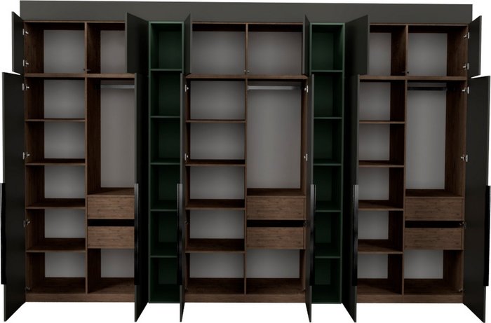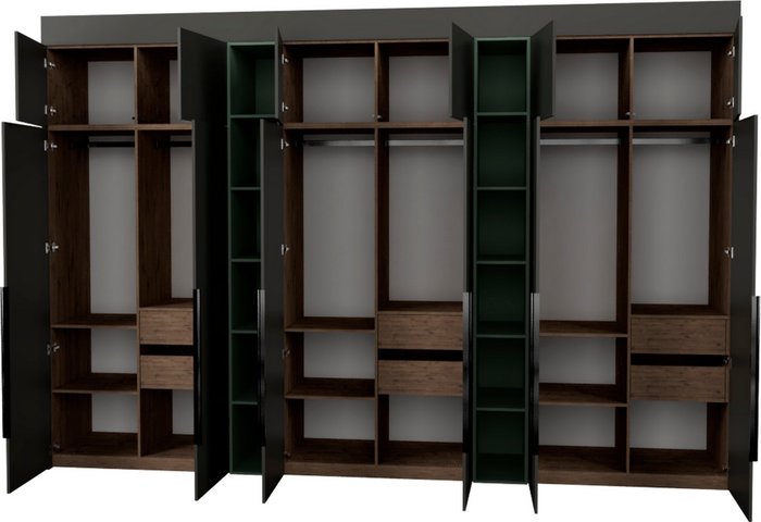 ✅Ключевые характеристикиШкаф распашной предназначен для хранения общего назначения и подходит для различных помещений: детской; жилой комнаты; столовой; прихожей; спальни и офиса. Модель имеет модульную конструкцию из ЛДСП с фасадами до пола и регулируемую высоту от 2450 до 2740 мм с помощью доборных элементов. Общие габариты составляют 387.2 см в ширину; а крепления защищают шкаф от опрокидывания; что повышает безопасность и устойчивость конструкции. Фасады выполнены из ЛДСП класса Е0.5 с сертифицированным качеством ЕАЭС.✅ПрактичностьШкаф легко собирается даже в узких помещениях и может устанавливаться в нишу; угол или вдоль стены. Внутреннее наполнение включает ящики; полки и штангу для одежды; что обеспечивает удобное хранение различных вещей. Направляющие скрытого монтажа с доводчиками повышают комфорт эксплуатации; а отсутствие видимого цоколя придает изделию современный и аккуратный вид.✅УникальностьДвухстороннее исполнение и модульная конструкция позволяют гибко использовать шкаф в разных планировках помещений. Высококачественные материалы и фурнитура; а также продуманная эргономика делают эту модель надежным и функциональным решением для организации пространства без необходимости ожидания изготовления на заказ.✅Ключевые характеристикиШкаф распашной предназначен для хранения общего назначения и подходит для различных помещений: детской; жилой комнаты; столовой; прихожей; спальни и офиса. Модель имеет модульную конструкцию из ЛДСП с фасадами до пола и регулируемую высоту от 2450 до 2740 мм с помощью доборных элементов. Общие габариты составляют 387.2 см в ширину; а крепления защищают шкаф от опрокидывания; что повышает безопасность и устойчивость конструкции. Фасады выполнены из ЛДСП класса Е0.5 с сертифицированным качеством ЕАЭС.✅ПрактичностьШкаф легко собирается даже в узких помещениях и может устанавливаться в нишу; угол или вдоль стены. Внутреннее наполнение включает ящики; полки и штангу для одежды; что обеспечивает удобное хранение различных вещей. Направляющие скрытого монтажа с доводчиками повышают комфорт эксплуатации; а отсутствие видимого цоколя придает изделию современный и аккуратный вид.✅УникальностьДвухстороннее исполнение и модульная конструкция позволяют гибко использовать шкаф в разных планировках помещений. Высококачественные материалы и фурнитура; а также продуманная эргономика делают эту модель надежным и функциональным решением для организации пространства без необходимости ожидания изготовления на заказ.