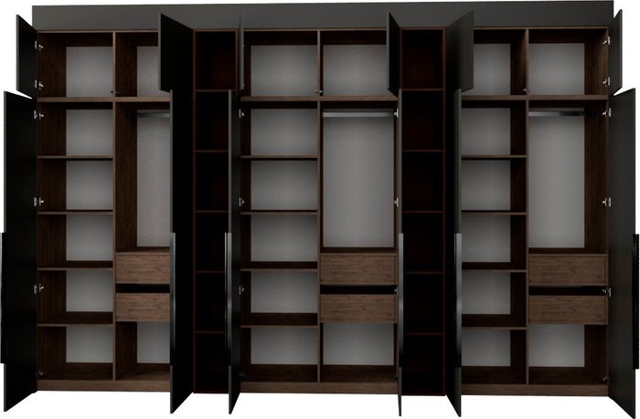✅Ключевые характеристикиШкаф распашной с модульной конструкцией предназначен для хранения одежды; книг и предметов общего назначения. Подходит для различных помещений: детской; жилой комнаты; столовой; прихожей; спальни; офиса и гардеробной. Общие размеры составляют 387.2 см в ширину; что обеспечивает вместительность и удобство использования.✅Преимущества и отличияВысота шкафа регулируется с помощью доборных элементов в диапазоне от 2450 до 2740 мм; что позволяет адаптировать мебель под разные потолки. Фасады выполнены из ЛДСП до пола без видимого цоколя; что придаёт изделию современный и аккуратный вид. Использование фурнитуры Blum и Hafele с доводчиками и TipOn-механизмами обеспечивает плавное и бесшумное открывание дверей и антресолей.✅ПрактичностьШкаф легко собирается даже в узких помещениях; оснащён регулируемыми металлическими опорами для компенсации неровностей пола и защитой от опрокидывания. Внутреннее наполнение включает 6 ящиков; что позволяет удобно организовать хранение различных вещей. Направляющие скрытого монтажа с доводчиками повышают комфорт эксплуатации.✅УникальностьИспользование ЛДСП класса Е0.5 с сертифицированным качеством ЕАЭС гарантирует экологичность и безопасность. Двухстороннее исполнение и наличие антресоли расширяют функциональность. Форма поставки в разобранном виде облегчает транспортировку и установку; а отсутствие подсветки компенсируется продуманной конструкцией и качественной фурнитурой.✅Ключевые характеристикиШкаф распашной с модульной конструкцией предназначен для хранения одежды; книг и предметов общего назначения. Подходит для различных помещений: детской; жилой комнаты; столовой; прихожей; спальни; офиса и гардеробной. Общие размеры составляют 387.2 см в ширину; что обеспечивает вместительность и удобство использования.✅Преимущества и отличияВысота шкафа регулируется с помощью доборных элементов в диапазоне от 2450 до 2740 мм; что позволяет адаптировать мебель под разные потолки. Фасады выполнены из ЛДСП до пола без видимого цоколя; что придаёт изделию современный и аккуратный вид. Использование фурнитуры Blum и Hafele с доводчиками и TipOn-механизмами обеспечивает плавное и бесшумное открывание дверей и антресолей.✅ПрактичностьШкаф легко собирается даже в узких помещениях; оснащён регулируемыми металлическими опорами для компенсации неровностей пола и защитой от опрокидывания. Внутреннее наполнение включает 6 ящиков; что позволяет удобно организовать хранение различных вещей. Направляющие скрытого монтажа с доводчиками повышают комфорт эксплуатации.✅УникальностьИспользование ЛДСП класса Е0.5 с сертифицированным качеством ЕАЭС гарантирует экологичность и безопасность. Двухстороннее исполнение и наличие антресоли расширяют функциональность. Форма поставки в разобранном виде облегчает транспортировку и установку; а отсутствие подсветки компенсируется продуманной конструкцией и качественной фурнитурой.