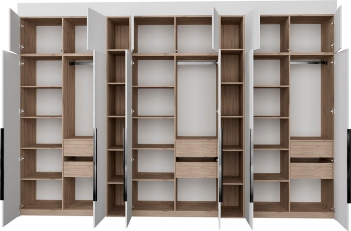 ✅Ключевые характеристикиШкаф представляет собой готовую к установке модульную конструкцию с распашными дверцами; предназначенную для хранения общего назначения в различных помещениях: детской; жилой комнате; столовой; прихожей; спальне и офисе. Высота изделия регулируется с помощью дополнительных элементов в диапазоне от 2450 до 2740 мм; что позволяет адаптировать шкаф под разные условия. Материалы корпуса и фасада выполнены из ЛДСП класса Е0,5 с качественной кромкой ПВХ; обеспечивающей долговечность и безопасность.✅Преимущества и отличияМодель оснащена фурнитурой Blum и Hafele с доводчиками и TipOn-механизмами; что гарантирует плавное и бесшумное закрывание дверей. Регулируемые металлические опоры компенсируют неровности пола; а специальные крепления защищают шкаф от опрокидывания; повышая безопасность эксплуатации. Фасады выполнены до пола без видимого цоколя; что придаёт изделию современный и аккуратный внешний вид.✅ПрактичностьВнутреннее наполнение включает ящики; полки и штангу; что обеспечивает удобное хранение различных вещей. Направляющие скрытого монтажа с доводчиками повышают комфорт использования. Форма исполнения двухсторонняя; что расширяет возможности размещения в помещении. Шкаф поставляется в разобранном виде; что облегчает транспортировку и сборку даже в узких пространствах.✅УникальностьДанная модель выделяется сочетанием модульной конструкции с возможностью регулировки высоты и использованием высококачественной фурнитуры с современными механизмами TipOn. ЛДСП класса Е0,5 с сертификацией ЕАЭС гарантирует экологическую безопасность и высокое качество материала; что редко встречается в готовой мебели данного класса.✅Ключевые характеристикиШкаф представляет собой готовую к установке модульную конструкцию с распашными дверцами; предназначенную для хранения общего назначения в различных помещениях: детской; жилой комнате; столовой; прихожей; спальне и офисе. Высота изделия регулируется с помощью дополнительных элементов в диапазоне от 2450 до 2740 мм; что позволяет адаптировать шкаф под разные условия. Материалы корпуса и фасада выполнены из ЛДСП класса Е0,5 с качественной кромкой ПВХ; обеспечивающей долговечность и безопасность.✅Преимущества и отличияМодель оснащена фурнитурой Blum и Hafele с доводчиками и TipOn-механизмами; что гарантирует плавное и бесшумное закрывание дверей. Регулируемые металлические опоры компенсируют неровности пола; а специальные крепления защищают шкаф от опрокидывания; повышая безопасность эксплуатации. Фасады выполнены до пола без видимого цоколя; что придаёт изделию современный и аккуратный внешний вид.✅ПрактичностьВнутреннее наполнение включает ящики; полки и штангу; что обеспечивает удобное хранение различных вещей. Направляющие скрытого монтажа с доводчиками повышают комфорт использования. Форма исполнения двухсторонняя; что расширяет возможности размещения в помещении. Шкаф поставляется в разобранном виде; что облегчает транспортировку и сборку даже в узких пространствах.✅УникальностьДанная модель выделяется сочетанием модульной конструкции с возможностью регулировки высоты и использованием высококачественной фурнитуры с современными механизмами TipOn. ЛДСП класса Е0,5 с сертификацией ЕАЭС гарантирует экологическую безопасность и высокое качеств